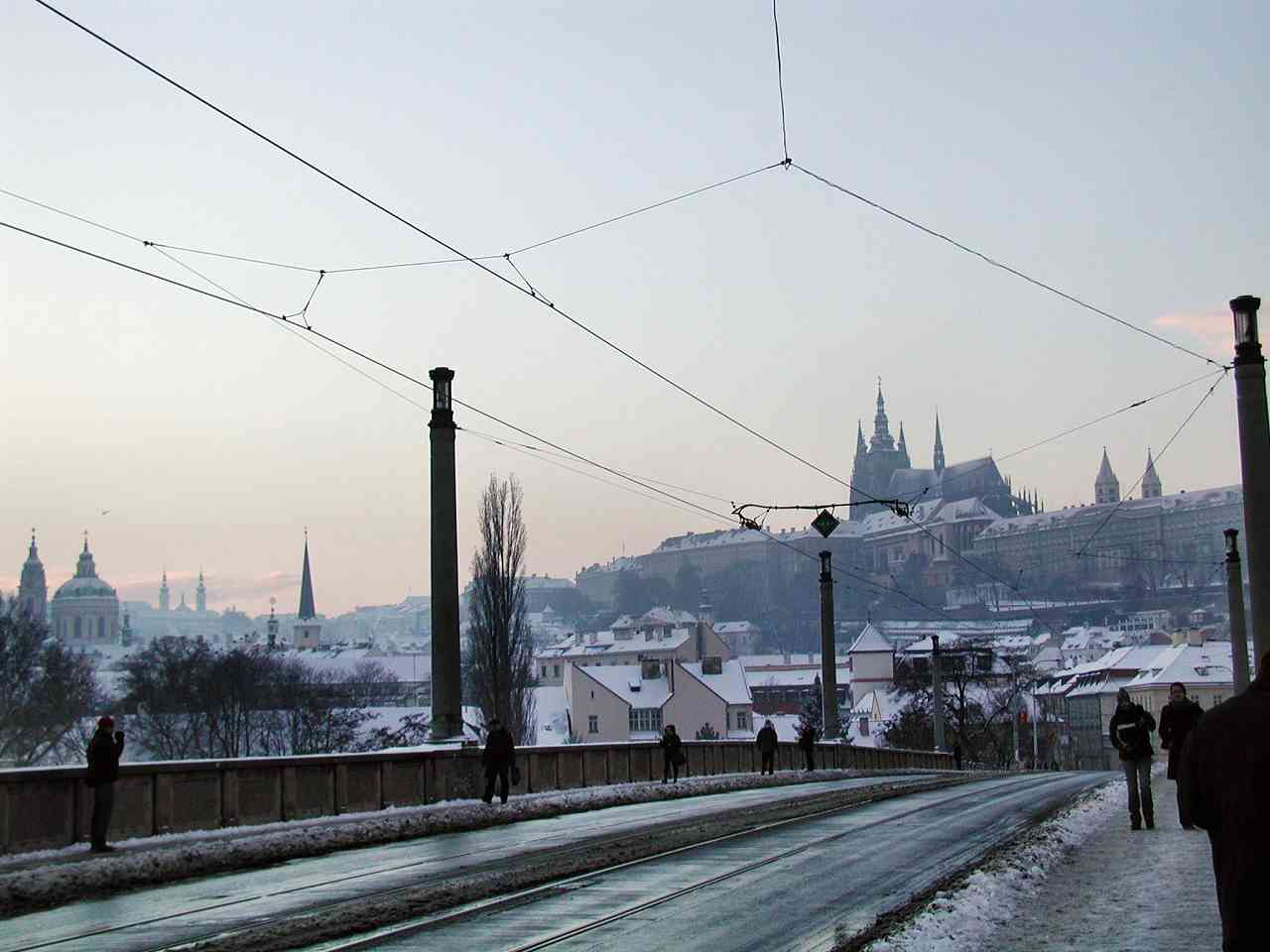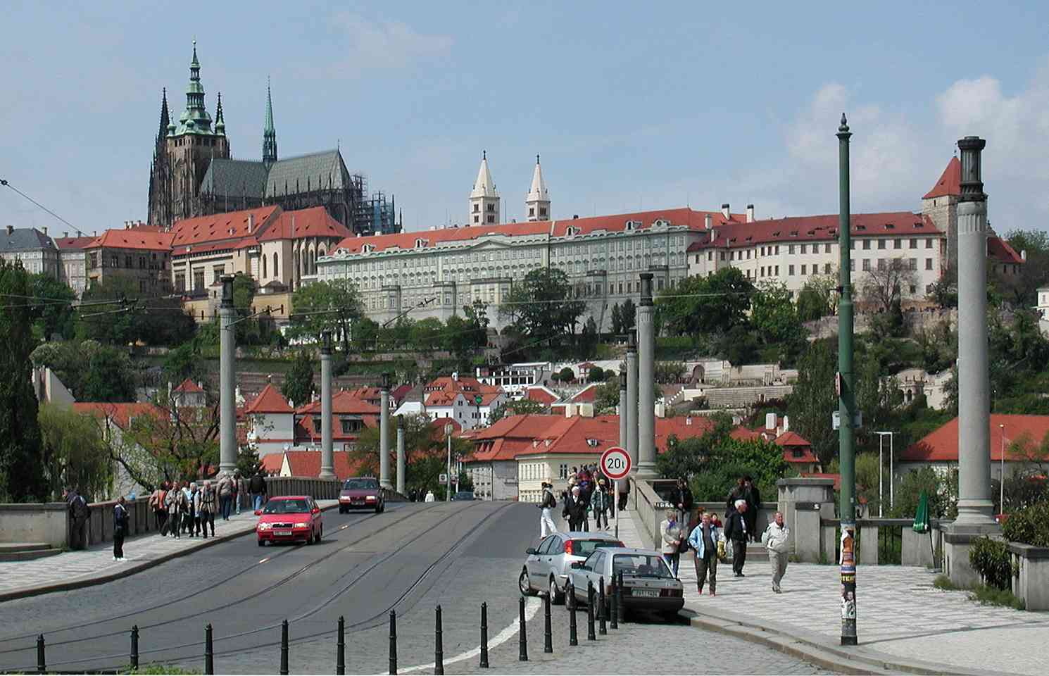 Vom Altstädter Ring, über die Kaprova ul., Jan-Palach-Pl. mit Rudolfinum über die Moldau, Letenská ul., Klárov, über die alte Schlosstreppe erreicht man die Prager Burg.