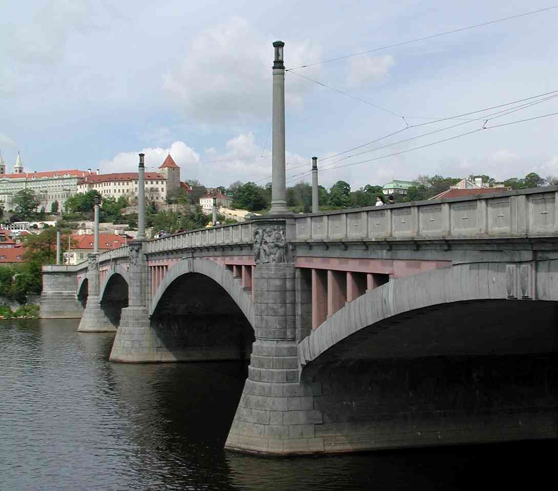 Die Brücke erhielt ursprünglich den Namen des österreichischen Thronfolgers Erzherzogs Franz Ferdinand D`Este. Ab dem Jahr 1920 trägt sie den Namen des tschechischen Dichters Josef Mánes. Sein Denkmal steht seit 1951 auf der Altstädter Seite in der Nähe der Brücke. Biografie und Werke