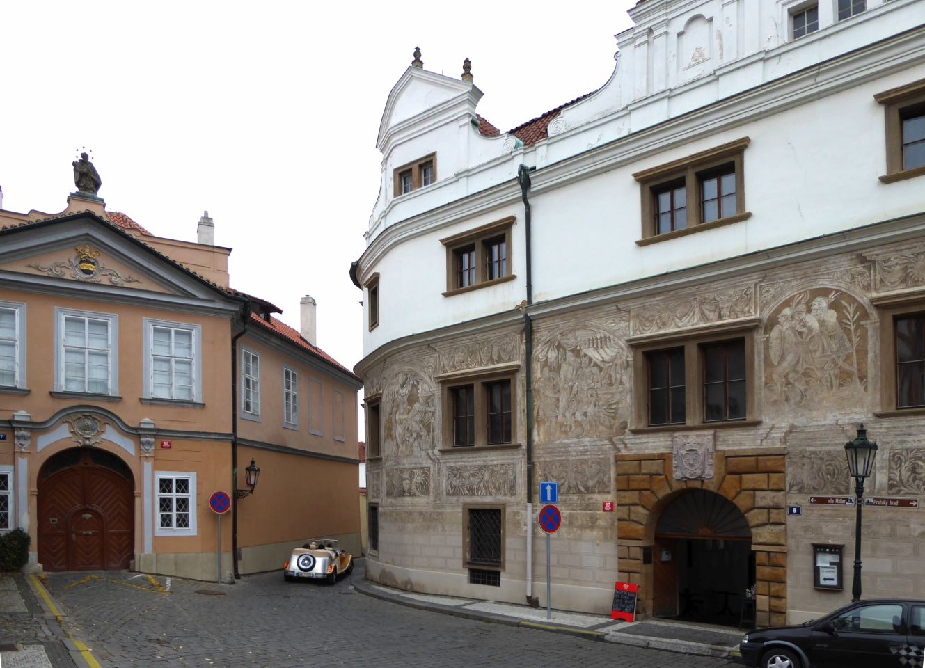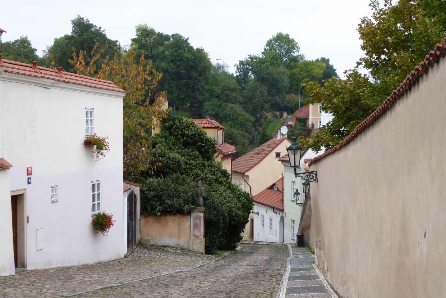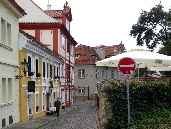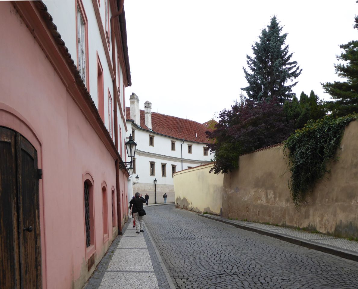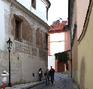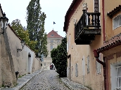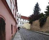Unser Spaziergang führt uns in der nordwestlichen Ecke des Hradschin-Platzes am Martinicer-Palast rechts in die Kanovnická - Domherren-Gasse. die an der Hlg.Jan Nepomuk-Kirche in die Straße U Kasáren - An den Kasernen einbiegt. Als Kanovnická fürhrt sie uns weiter in Richtung Burggraben, wo wir links in die Nový Svět - Neue Welt einbiegen.