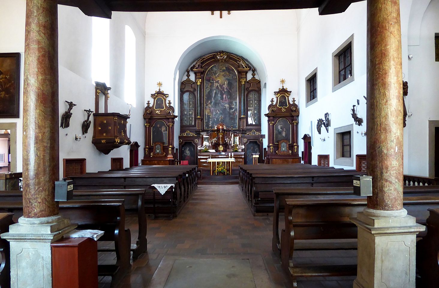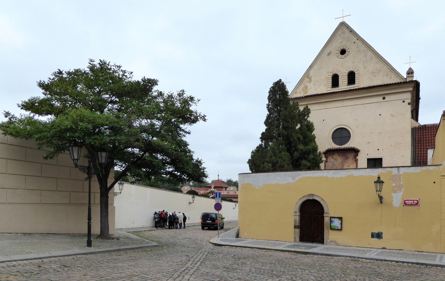 Wir biegen links in die Černínská ein, die in Richtung Loreto-Platz führt. An der Platzeinmündung kommen wir links zum Kapuziner-Kloster mit der Engelhaften Jungfrau Maria-Kirche. Gegenüber ist der Eingang zum Garten des Černín-Palastes den wir, soweit er offen ist, auch besuchen.