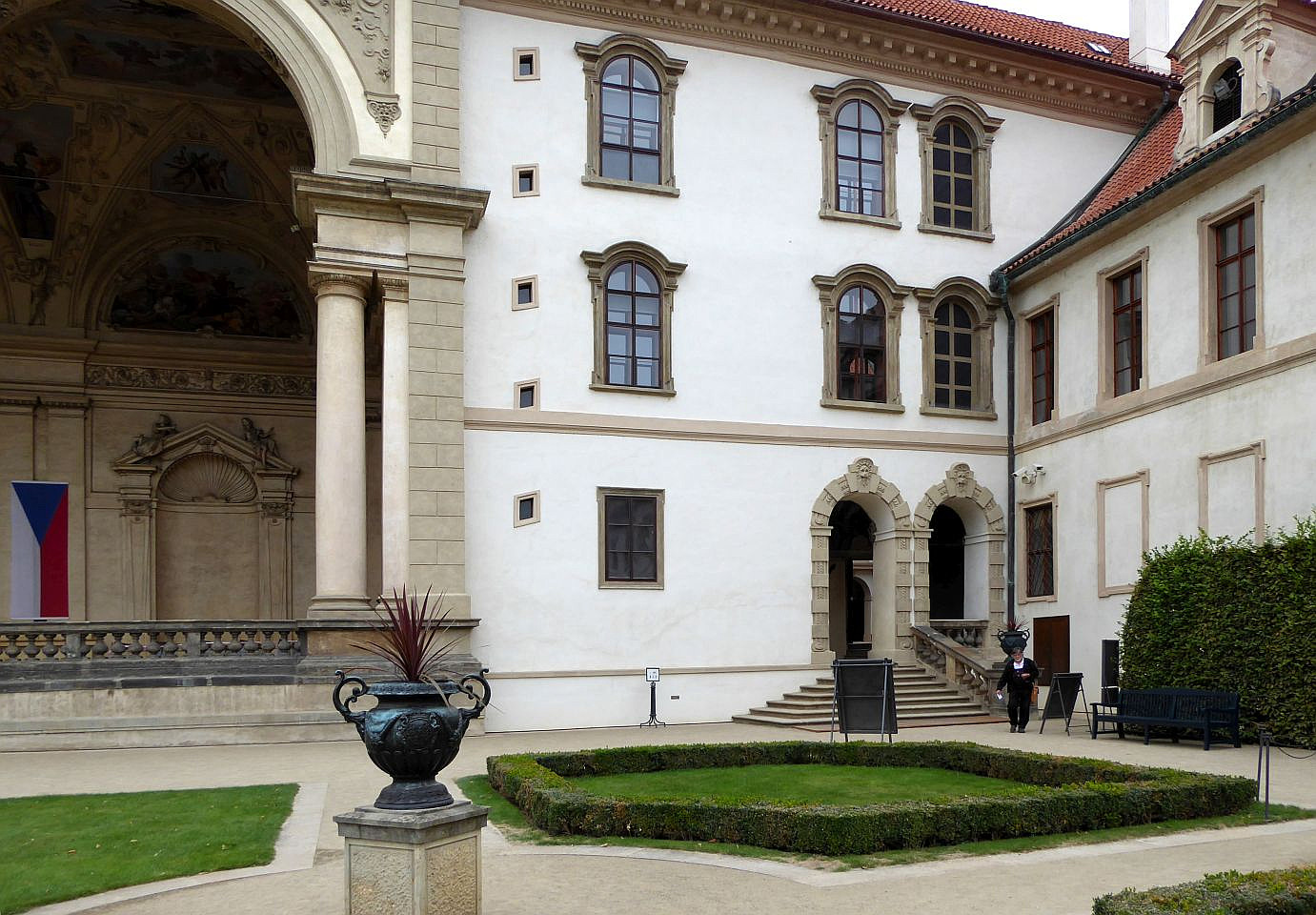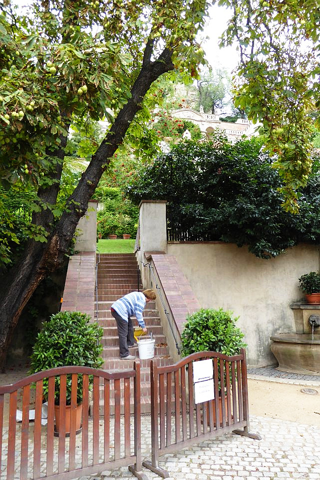 Durch den 1.Innenhof kommen wir zum herrlichen Valdštejnpalast-Garten, der frei zugänglich ist. Den Garten können wir jetzt besichtigen, wenn es nicht bereits in Zusammenhang mit dem Burg-Gärten-Spaziergang geschehen ist (siehe Spaziergänge -> Hradschin -> Burg-Gärten).