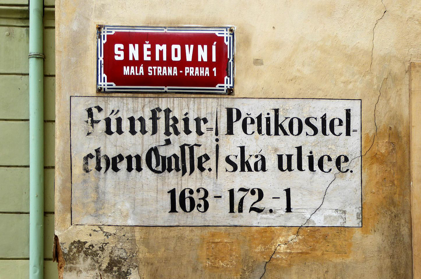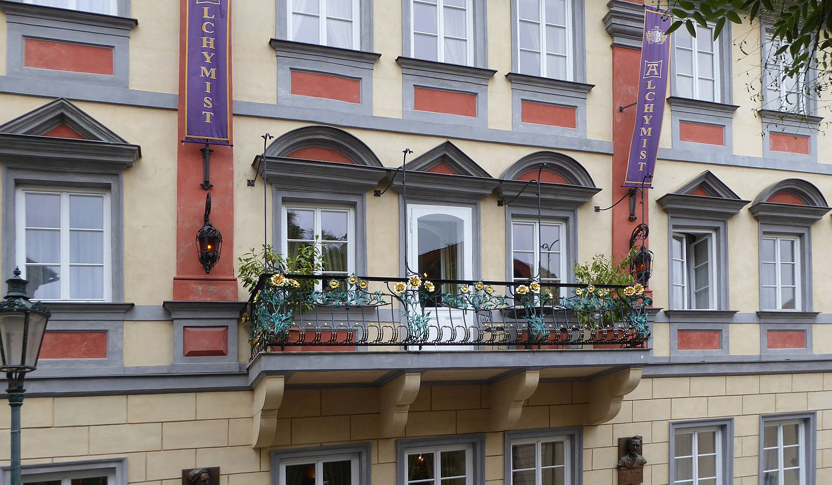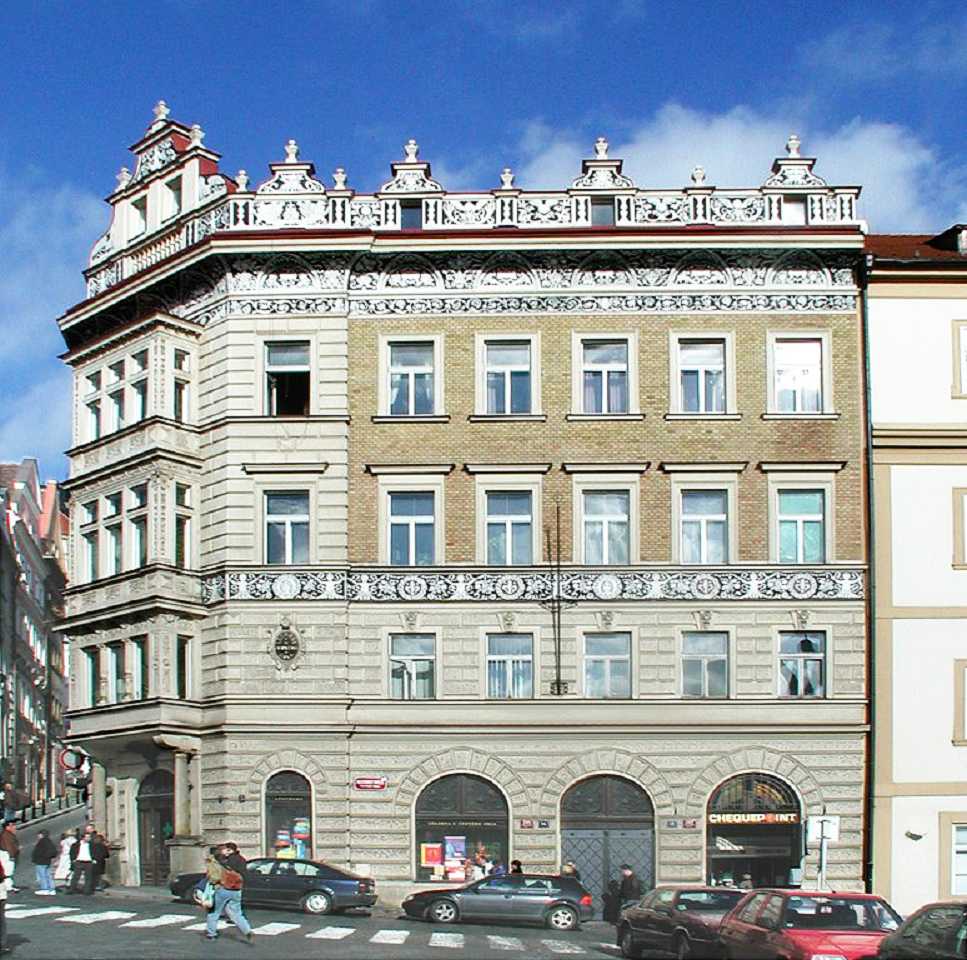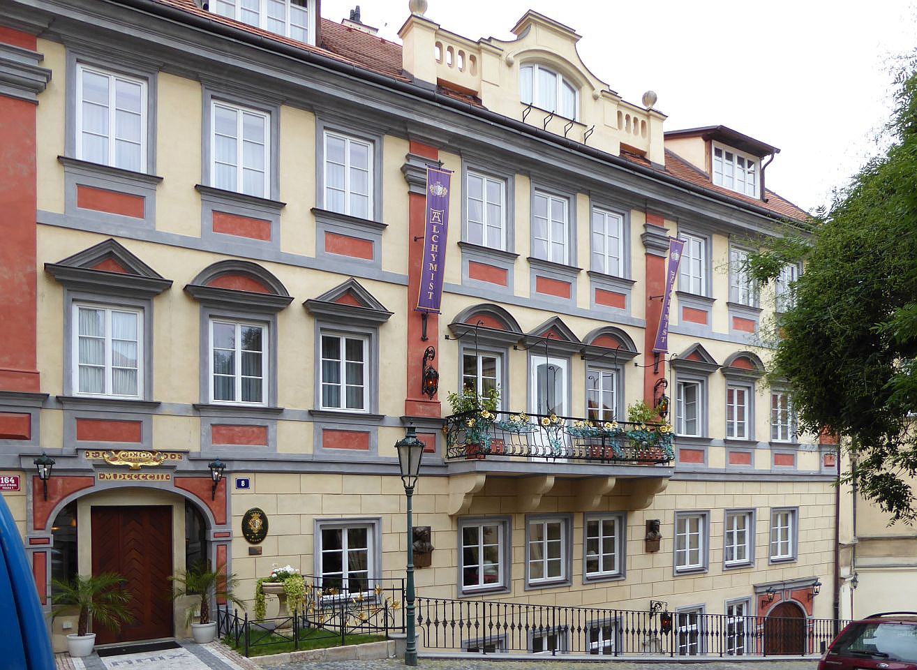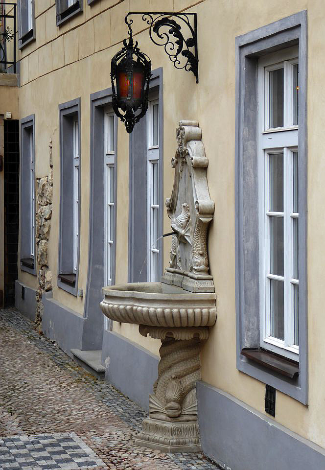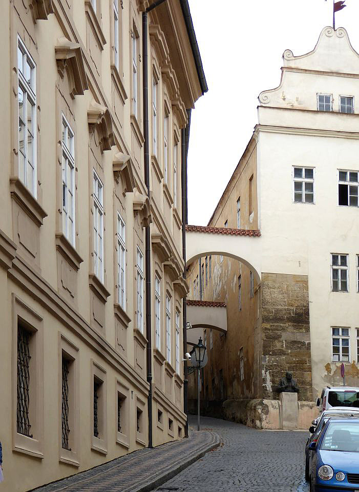 Zurück zum Valdštejn-Platz und gegenüber dem Palst biegen wir in die Straße Sněmovní, die uns zu einem kleinen Platz, mittig mit einem Baum und Parkbänken, bringt. Auf der rechten Straßenseite steht das Hotel Alchymist. In dem Gebäude lebten im 17. Jh. der tschechische Maler Peter Brandl und im 19.Jh. der Prager Sezessions-Architekt Josef Fanta, der u.a. am Bau des historischen Hauptbahnhofsgebäude beteiligt war. Weiter durch die Straße Sněmovní gelangen wir zum Thun-Palast in dem sich das Abgeordnetenhaus des tschechischen Parlaments befindet.