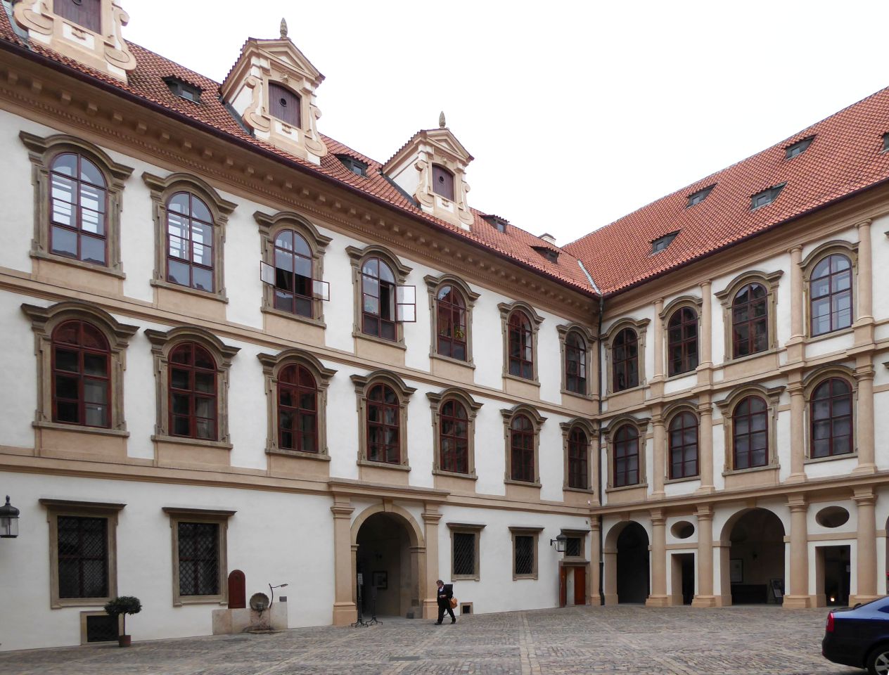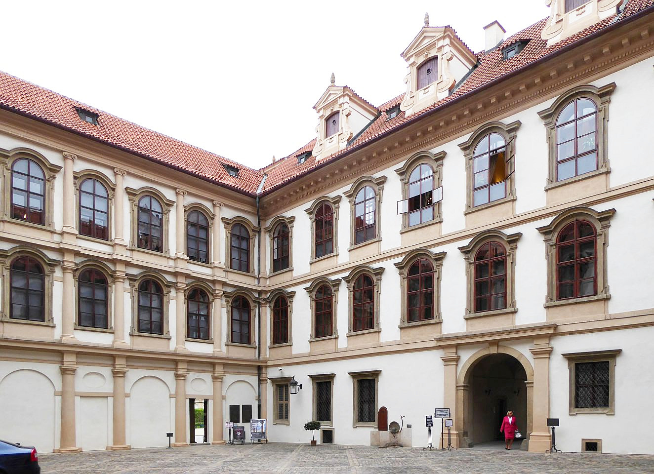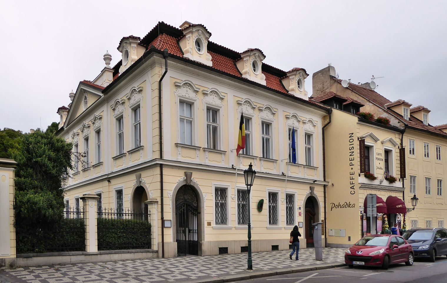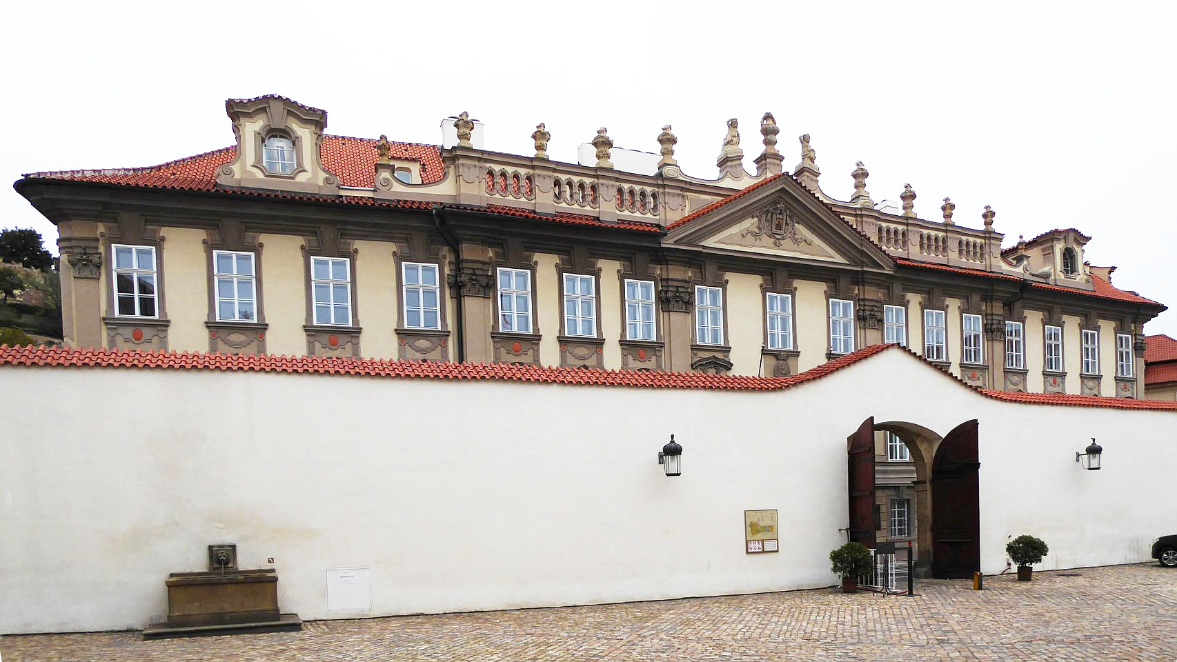 Unser Spaziergang (ca. 2km) beginnt an der Metro-Haltestelle Malostránská, zu der wir vom Wenzelsplatz mit der Metro-Linie A kommen. Wir überqueren den Innenhof am Valdštejn-Reitstall und durch das Tor zu der Straße Valdštejnská kommen wir zum ersten Palast auf der gegenüber liegenden Straßenseite, in dem die belgische Botschaft siedelt. Neben dem Garten der Botschaft führt ein Durchgang zum Eingang zu den Palastgärten unterhalb der Burg.