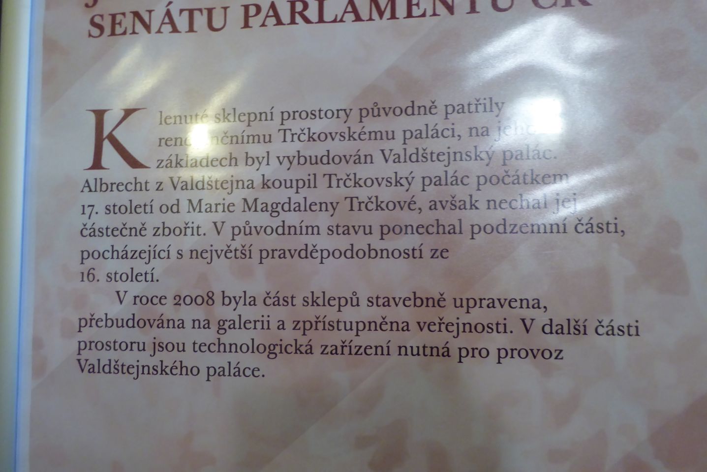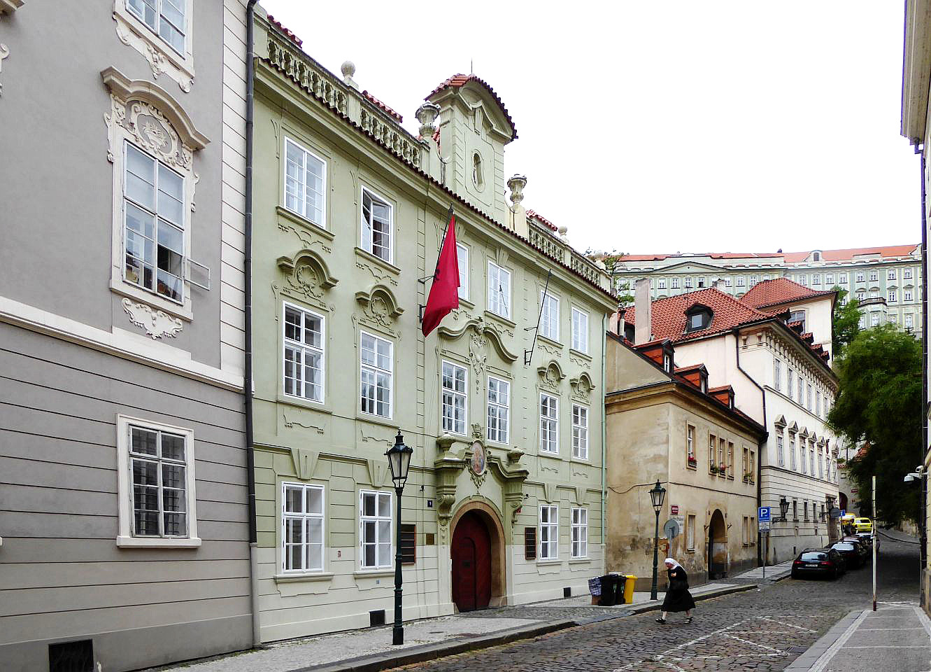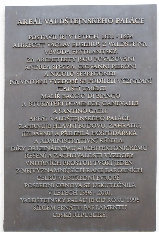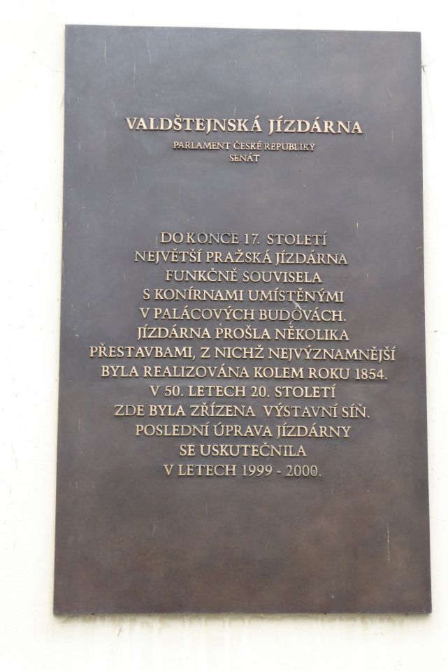 Gegenüber ist der Haupteingang zum Valdštejn-Palast, dem Hauptsitz des Senats des tschechischen Parlaments. Im Palast befindet sich auch eine Galerie der protokolarischen Geschenke anläßlich von Staatsbesuchen.