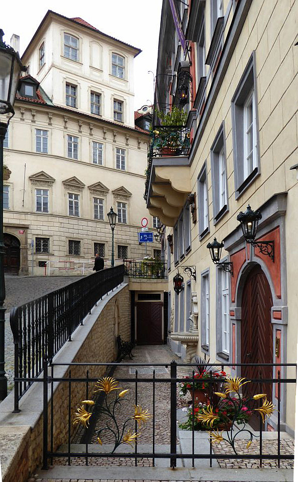 Der nächste Garten gehört zum Fürstenberg-Palast mit der polnischen Botschaft. Weiter geht es an der Mauer zum Valdštejn-Garten entlang und nach dem Fürstenberg-Palast zum Kolovrat-Palast, der zum Komplex des Senats des tschechischen Parlaments gehört.