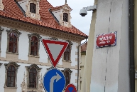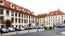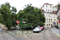 Ein Stück zurück kommen wir rechts zu der Straße Zámecká, die uns zur Ecke des oberen Kleinseitener Platzes und zur Straßenbahn-Haltestelle im unteren Bereich bringt. Mit der Straßenbahn können wir zurück zum Wenzelsplatz fahren oder hier eine weitere Spaziergang-Trasse beginnen.