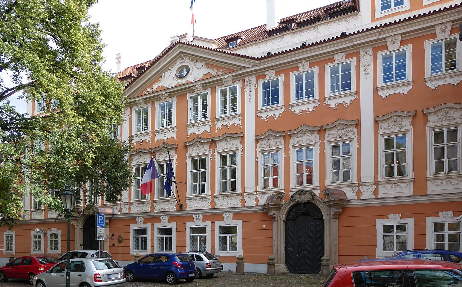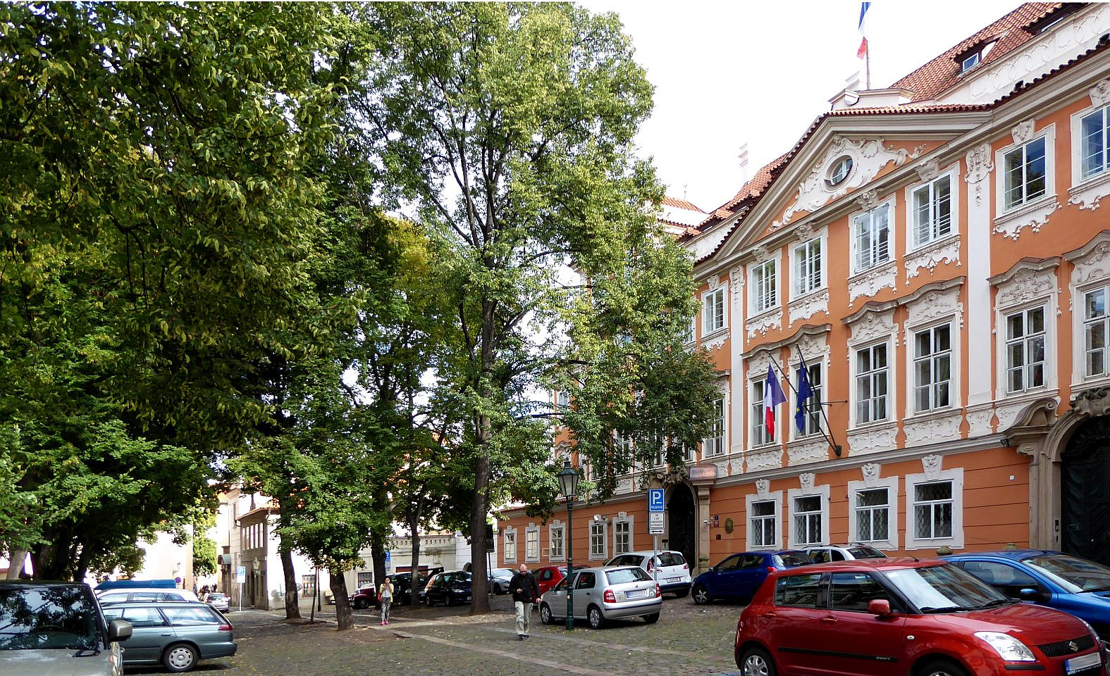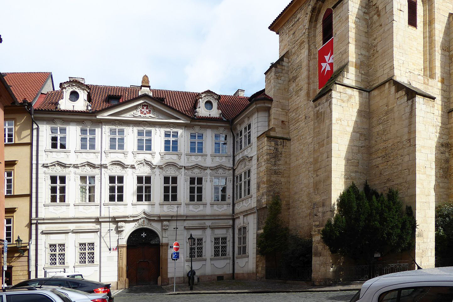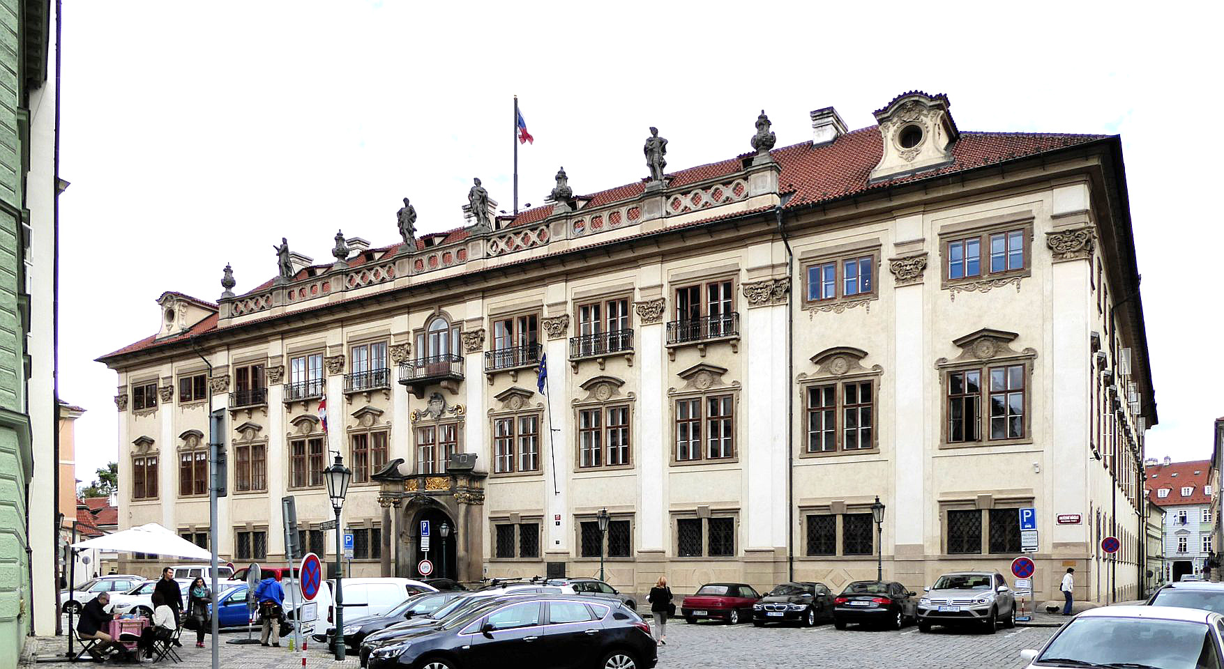 Gegenüber steht der Buquoy-Palast. Hier stand früher eine Schule aus der später das Alumnat (Priestersseminar) des Malteser-Ritterordens wurde. 1719 von Josefina Thun vergrößert wurde der Palast an die Prinzessin Maria Anna Fürstenberg 1732 verkauft und 1748 vom Geschlecht der Buquoy erworben. Im Palast siedelt seit 1919 die französische Botschaft, die den Palast 1930 käuflich erwarb. Rechts vom Palast befindet sich der Kleine Buquoy-Palast in den Graf Karl Georg Buquoy umgezogen ist, nach dem er den großen Palast an Frankreich vermietet hat. Link vom Palast am Ende des Platzes steht der Metych aus Čečov-Palast auch Hrzán-Palast, erbaut 1580 von Jan Metych aus Čečov und 1702 im Besitz des Geschlechts Hrzán aus Harasov.