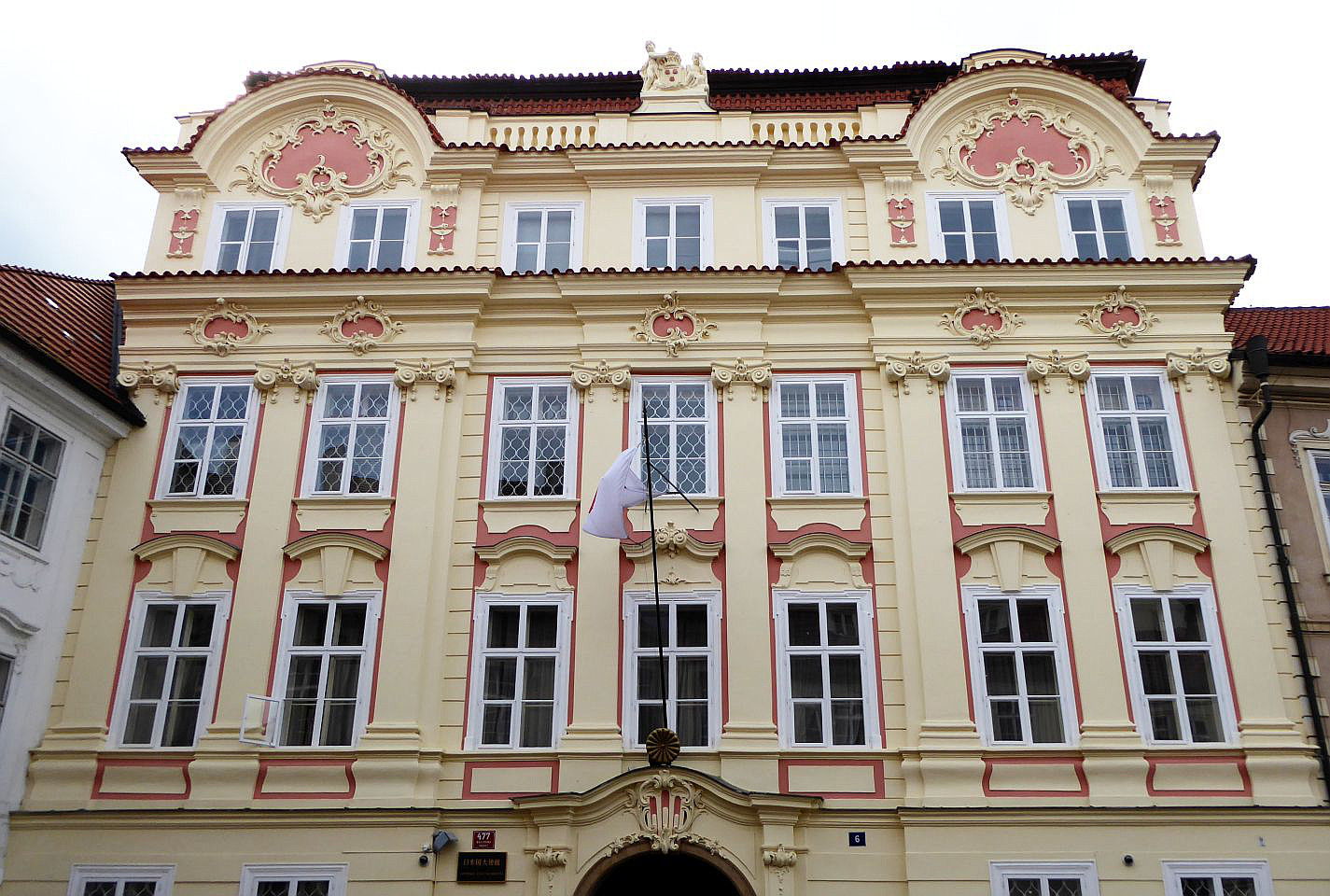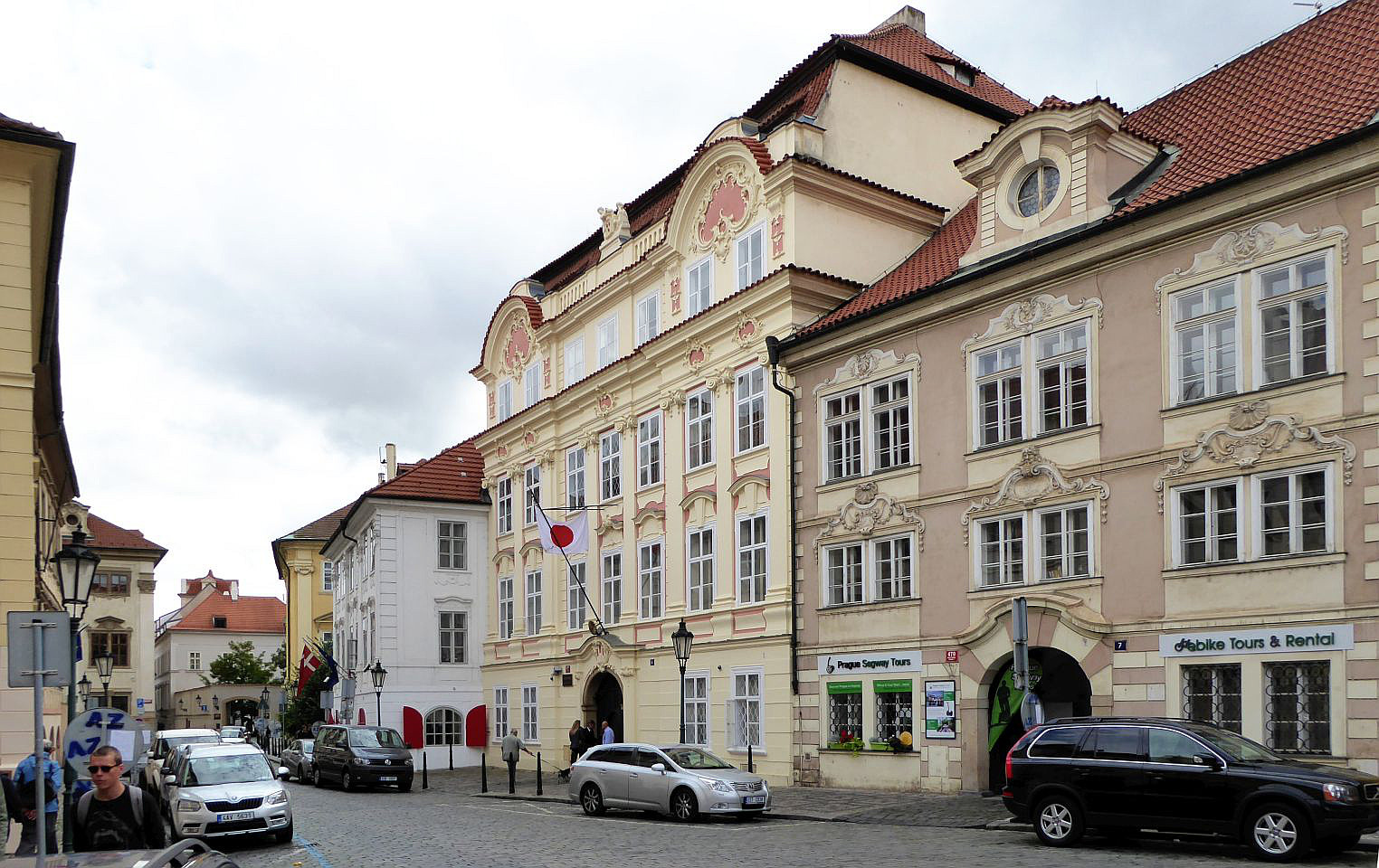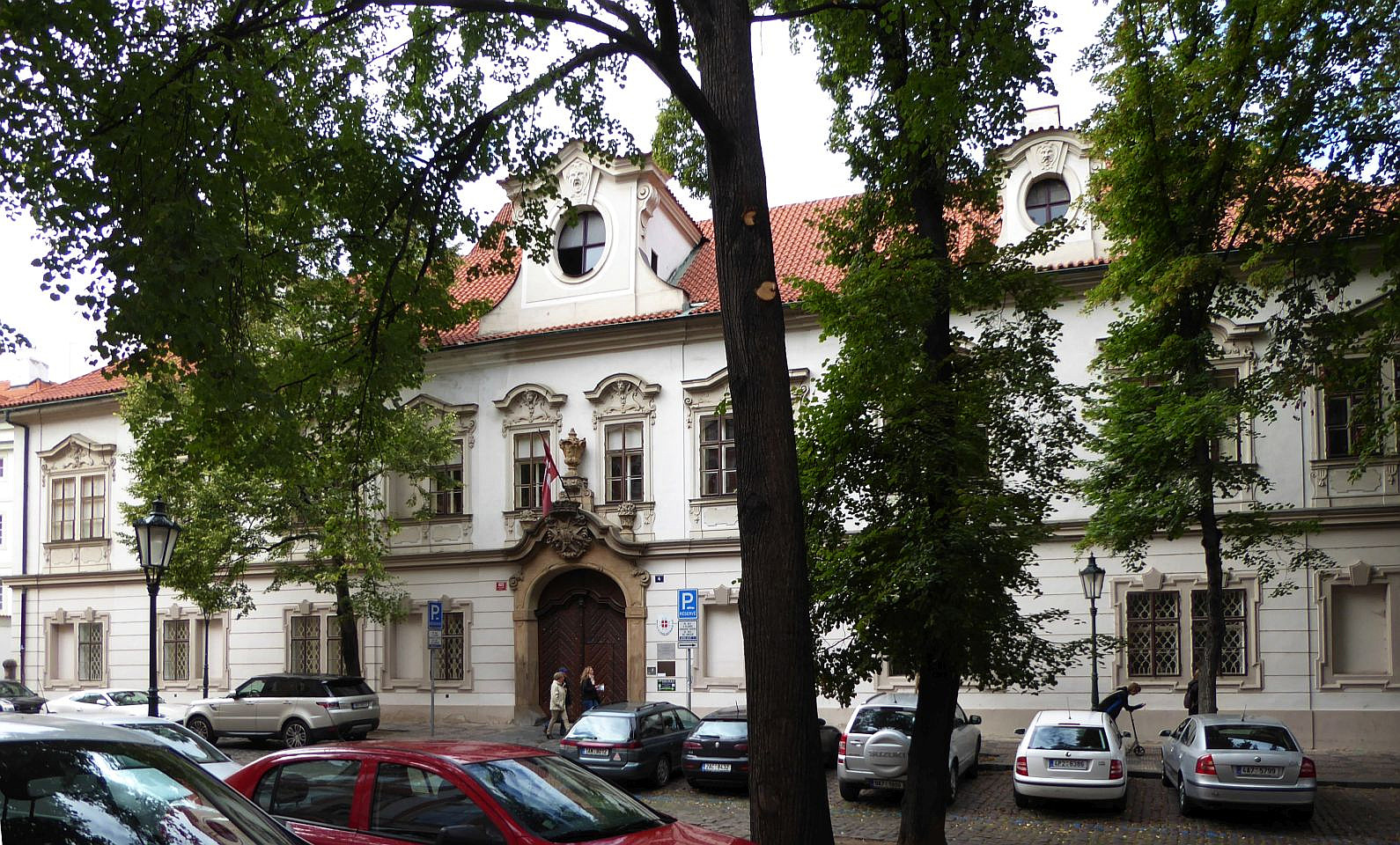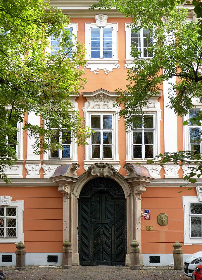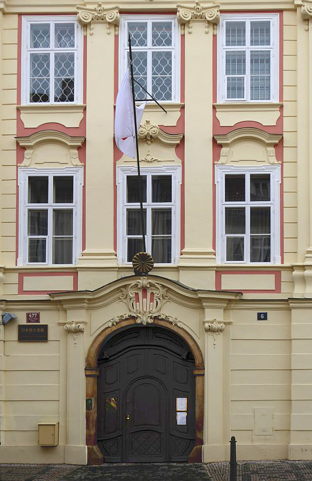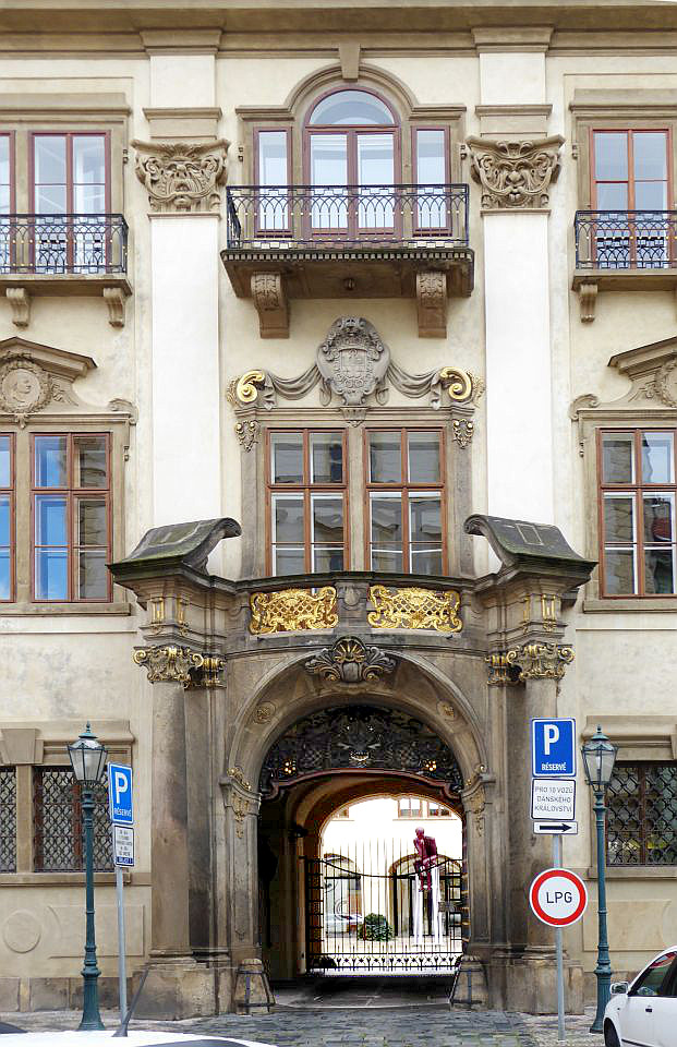 Das nächste Haus auf der linken Seite ist die Vertretung des Königreichs Dänemark. Daneben, etwas zurück versetzt, steht der Turba-Palast aus dem 17.Jh., in dem heute die Vertretung des Kaiserreichs Japan ihren Sitz hat. Dem gegenüber steht der Straka-Palast aus dem 17.Jh., auch Zu sieben Teufeln oder Zum weißen Pferdchen, in dem heute Konservatorium Jan Deyls für sehbehinderte siedelt.