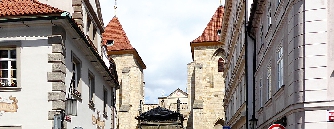 Durch die Engstelle zurück, kommen wir zu der Straße Lázeňská - Badgasse und stehen vor der Kirche Jungfrau Maria unter der Kette.