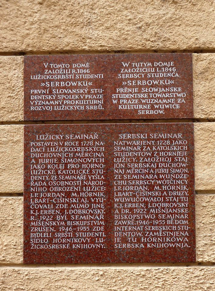 Hier an der Ecke und in Sichtweite zu der Karlsbrücke steht das Lausitzer Seminar. Im Seminar wurden Studenten aus der Lausitz, die damals zur Tschechischen Krone gehörte, zwischen 1728 und bis zur Auflösung 1922, zu Priestern ausgebildet. Heute befindet sich im Gebäude ein Verbindungsbüro des Freistaates Sachsen.