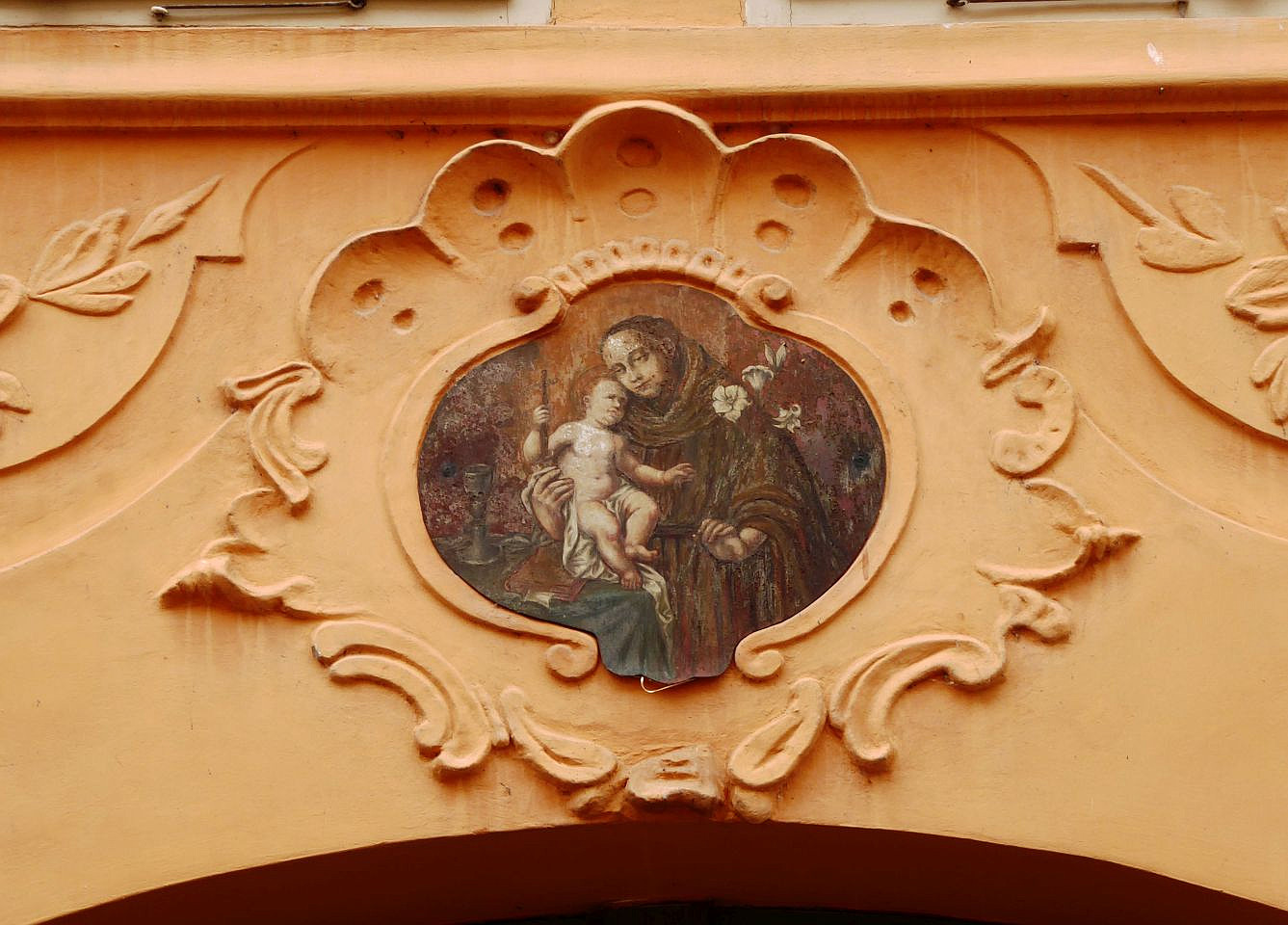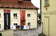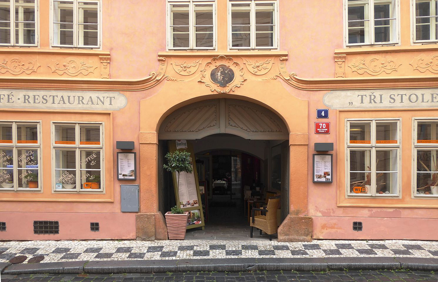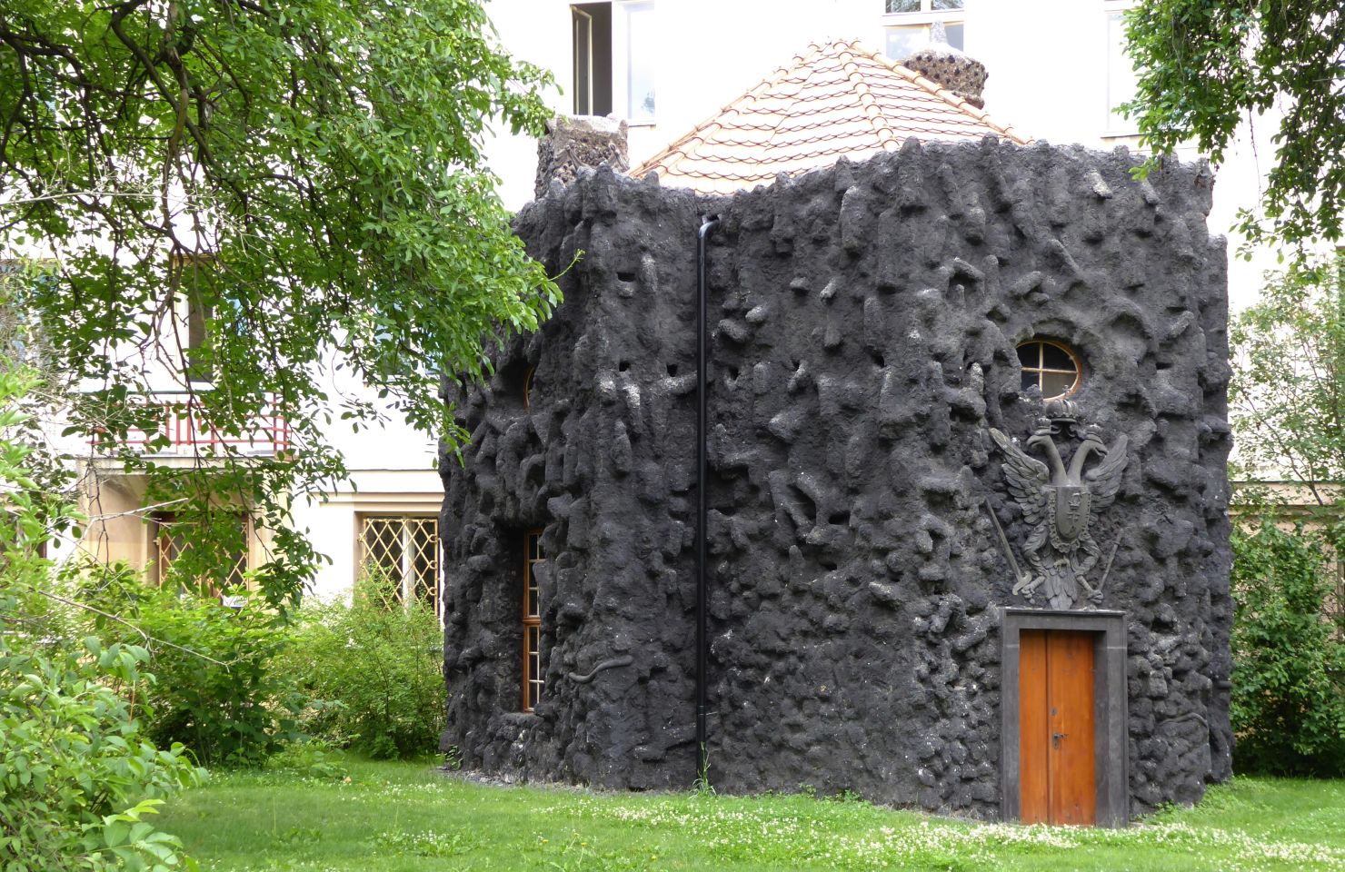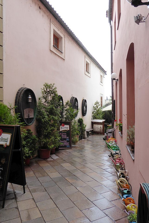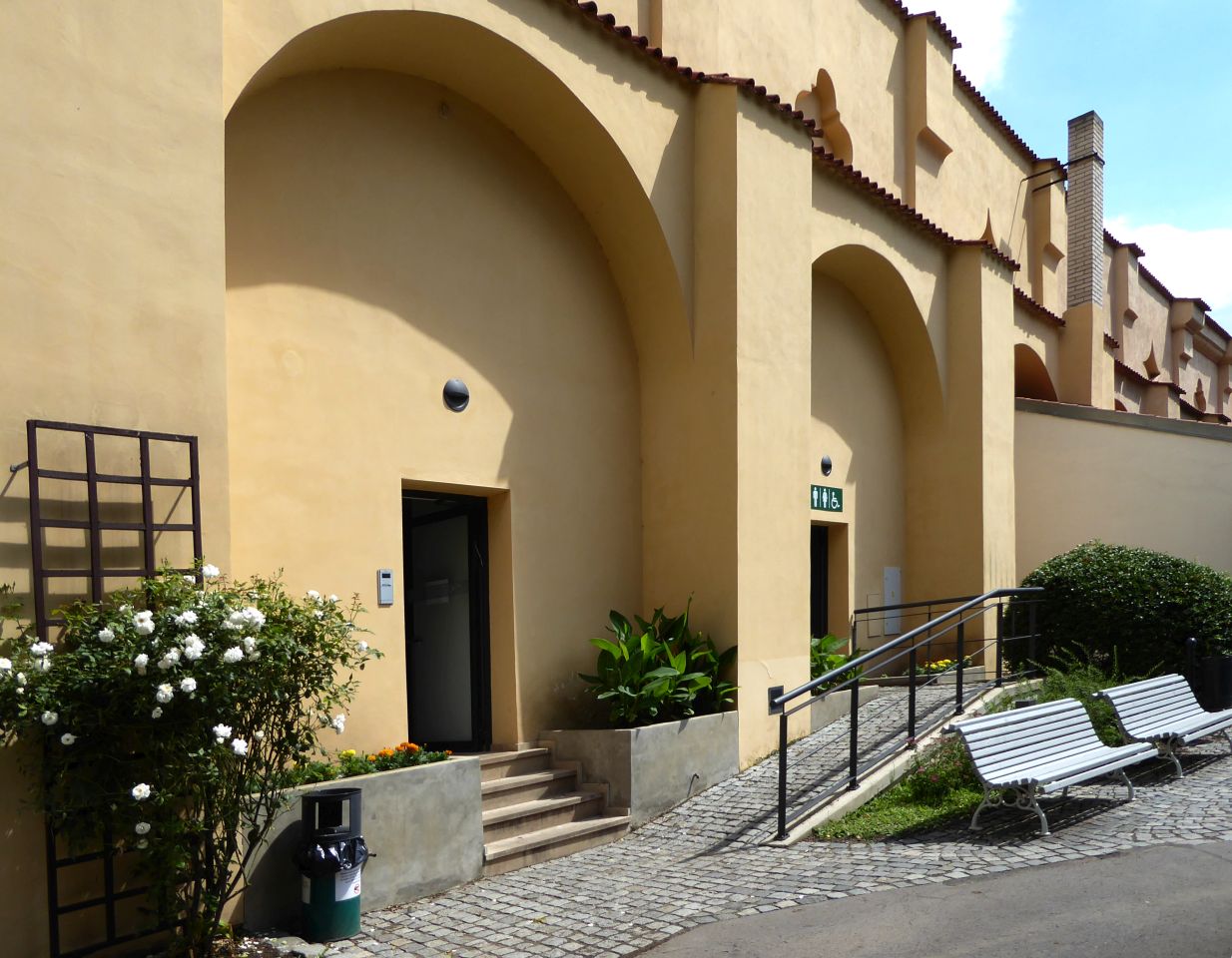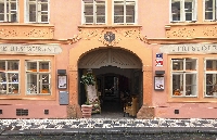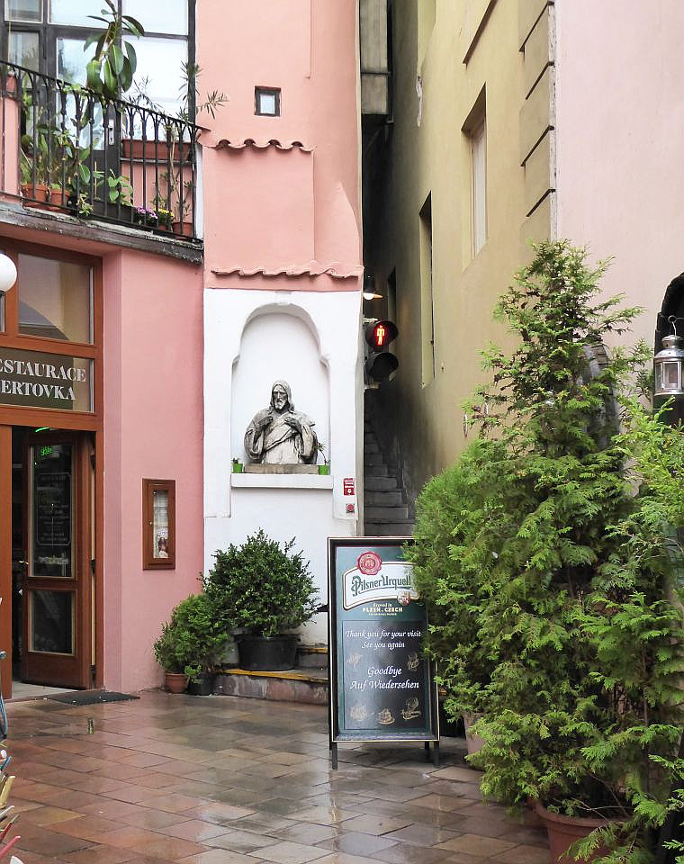 Wir gehen links und kommen an der Gabelung der Straßen U Lužického semináře - Zum Lausitzer Seminar und Cihelná - Ziegelei-Gasse zum Gartenrestaurant Černý orel - Schwarzer Adler und biegen rchts in die Cihelná ein. Nach ein paar Schritten stehen wir vor dem Tor zur früheren Herget-Ziegelei. Hier befindet sich das Franz Kafka-Museum.