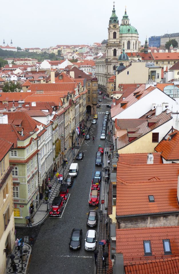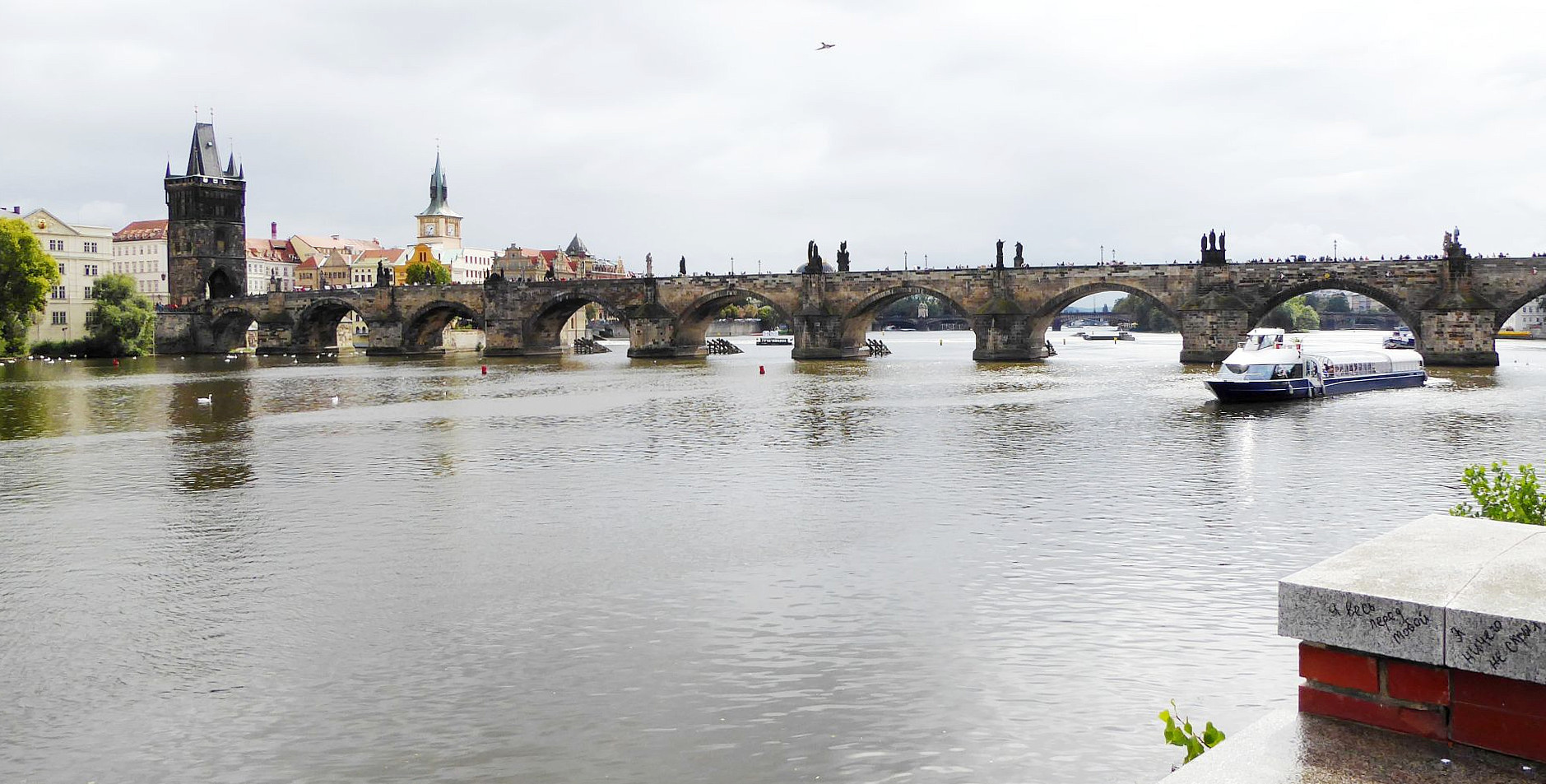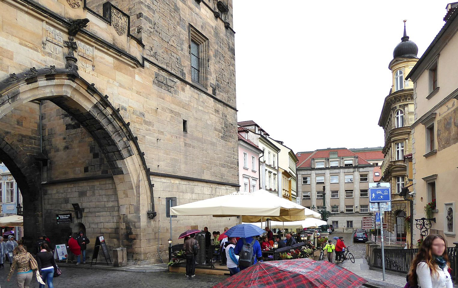 Damit haben wir unseren Spaziergang fast beendet. Wir können jetzt am Brückenturm entweder links über die Karlsbrücke zur Altstadt und weiter zum Wenzelsplatz zurück gehen (1,5 km) oder rechts durch die Straße Mostecká - Brücken-Gasse zum Kleinseitener Platz spazieren (200 m) und dann mit der Straßenbahn zurück zum Wenzelsplatz fahren.