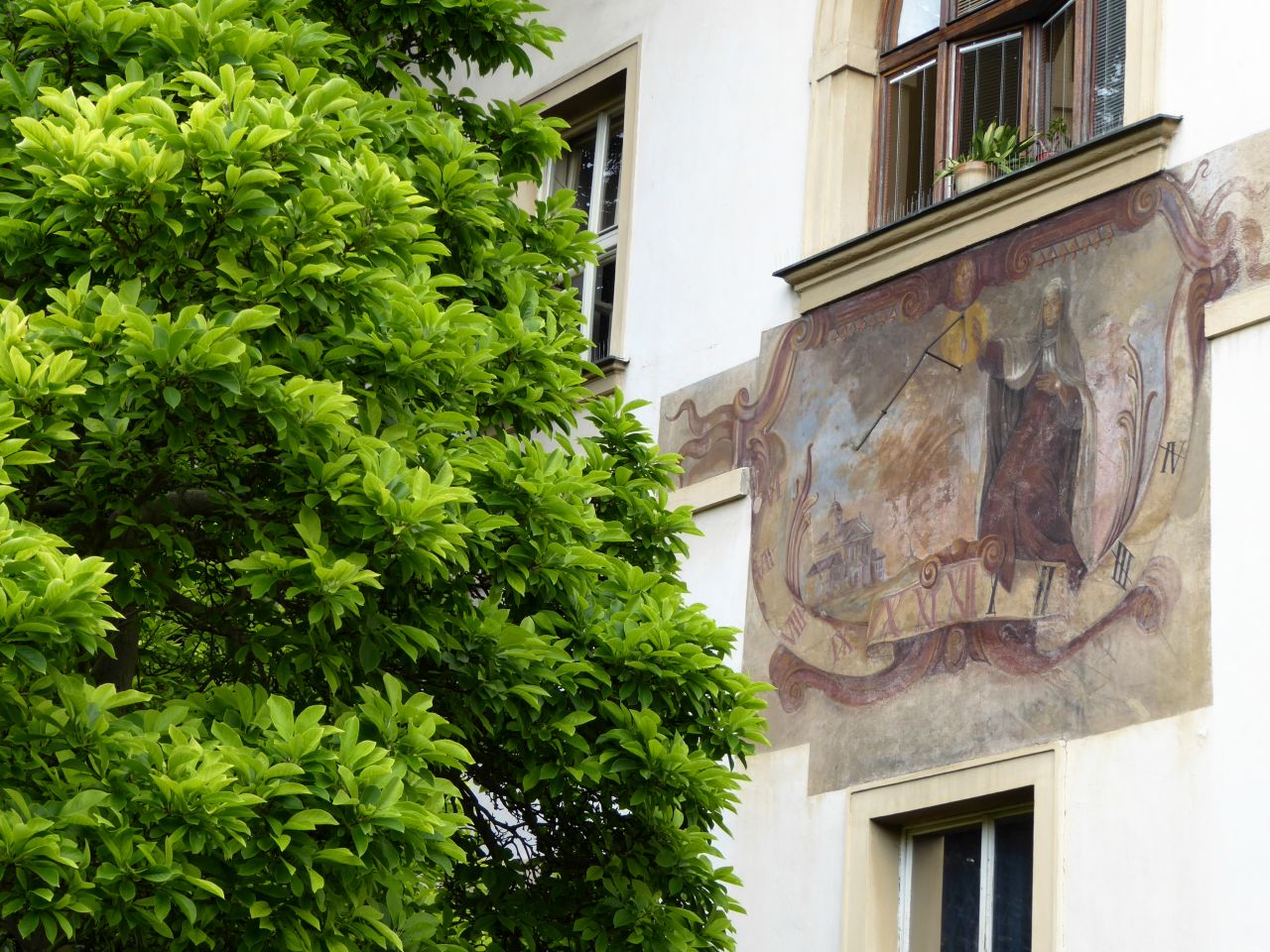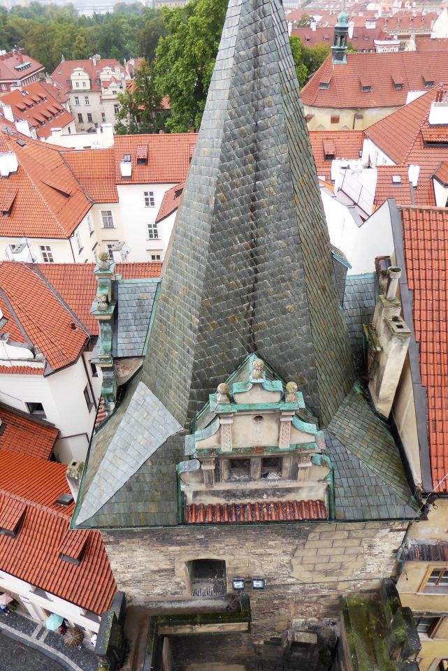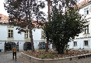 Vor dem Seminar biegen wir rechts in die Míšenská, kommen an einem Café-Restaurant Tři století - Drei Jahrhunderte und einem Hostel vorbei und erreichen unterhalb des Kleinseitenen Brückenturms den kleinen Platz Dražického nám., den früheren Bistumshof aus dem 12.Jh. unter der Leitung des Bischofs Jan IV. aus Dražic (*1301 +1343). Daher der Name des Platzes. Zum Bistum gehörte auch der heutige Vojan-Park und der Bistumshof war eher eine Festung als ein Hof. Vor uns sehen wir den Kleinseitener Brückenturm mit einem Aufgang. Falls es die Beine noch erlauben, steigen wir hoch und genießen den herrlichen Ausblick auf die Kleinseite.
