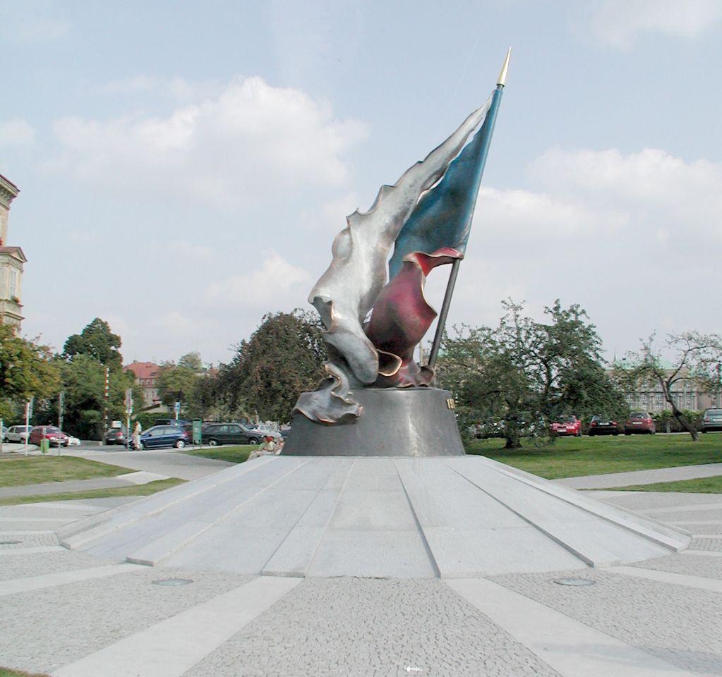 Im Hof der Ziegelei steht auch eine Statuengruppe des tschechischen zeitgenössischen provokativen Bildhauers David Černý (engl.).