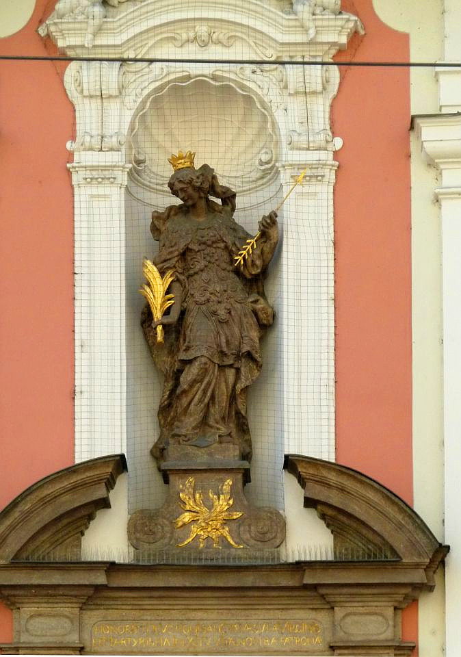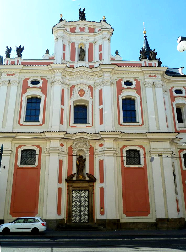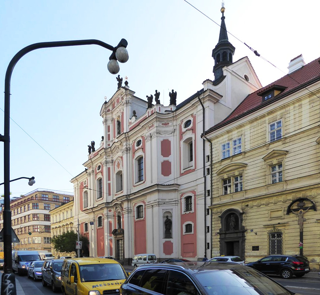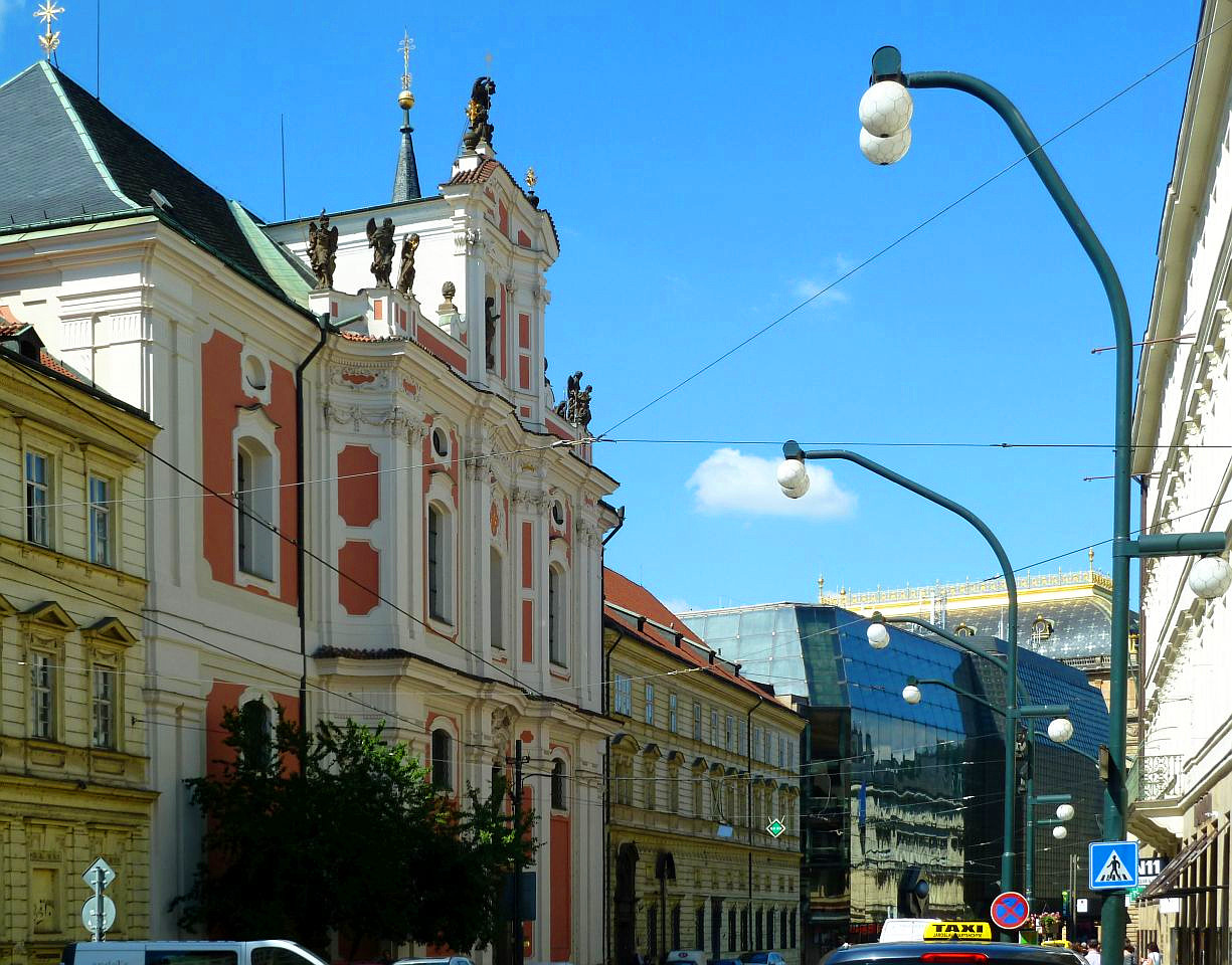Weiter in der Národní erreichen wir auf der rechten Straßenseite das Kloster und die Kirche der Hlg. Voršila (Ursula) von 1704. Der Ursulinen-Orden, gegründet 1535, kommt aus Norditalien. Hlg. Ursula war im 4.Jh. die Tochter eines britischen Königs.