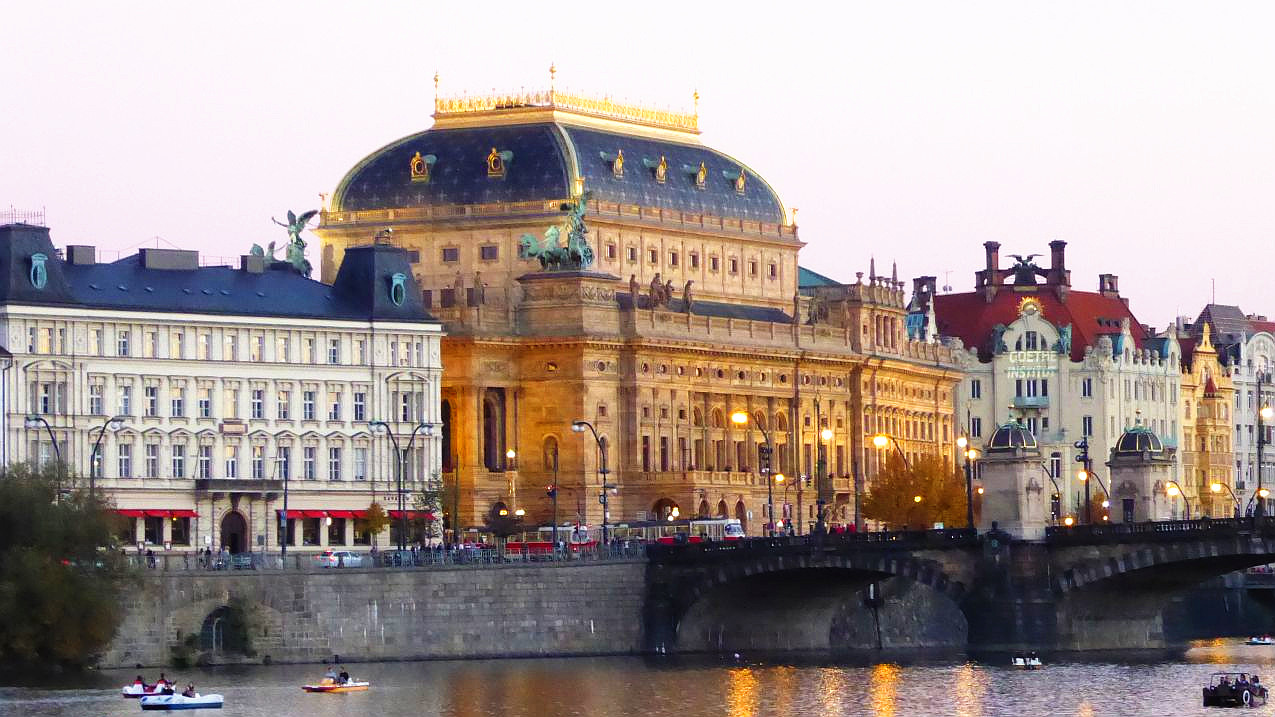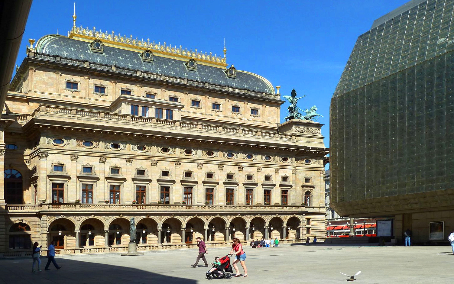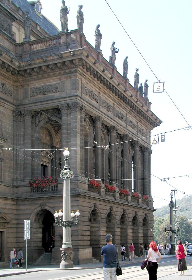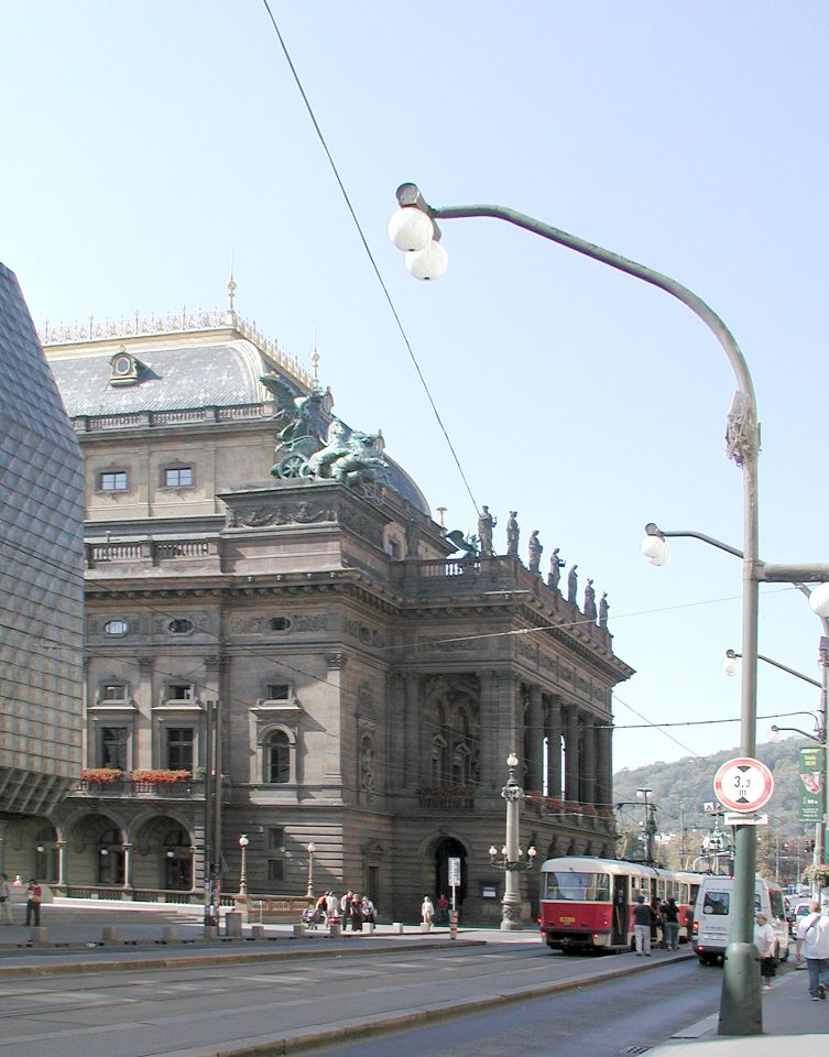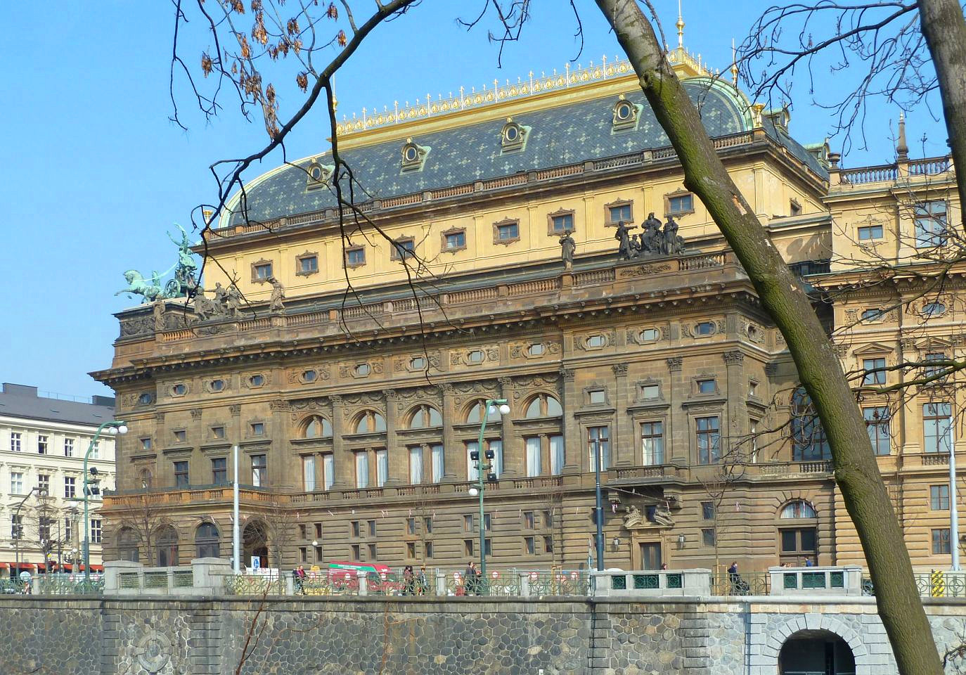 Gegenüber an der Ecke mit der Masaryk-Uferstraße wurde von 1868-1881 unter Architekt Josef Zítka das National-Theater, als unabhängiges tschechisches Theater errichtet - ein Symbol des neuen nationalen Selbstbewustseins der Tschechen. Finanziert wurde der Bau vorwiegend durch Spenden und Loterie-Einnahmen. Das klassische Interieur im Sinne der Neorenaissance wurde inspiriert von der herrschenden Begeisterung für slawische Mythologie. Hauptbteiligt war der tschechische Maler Mikoláš Aleš.