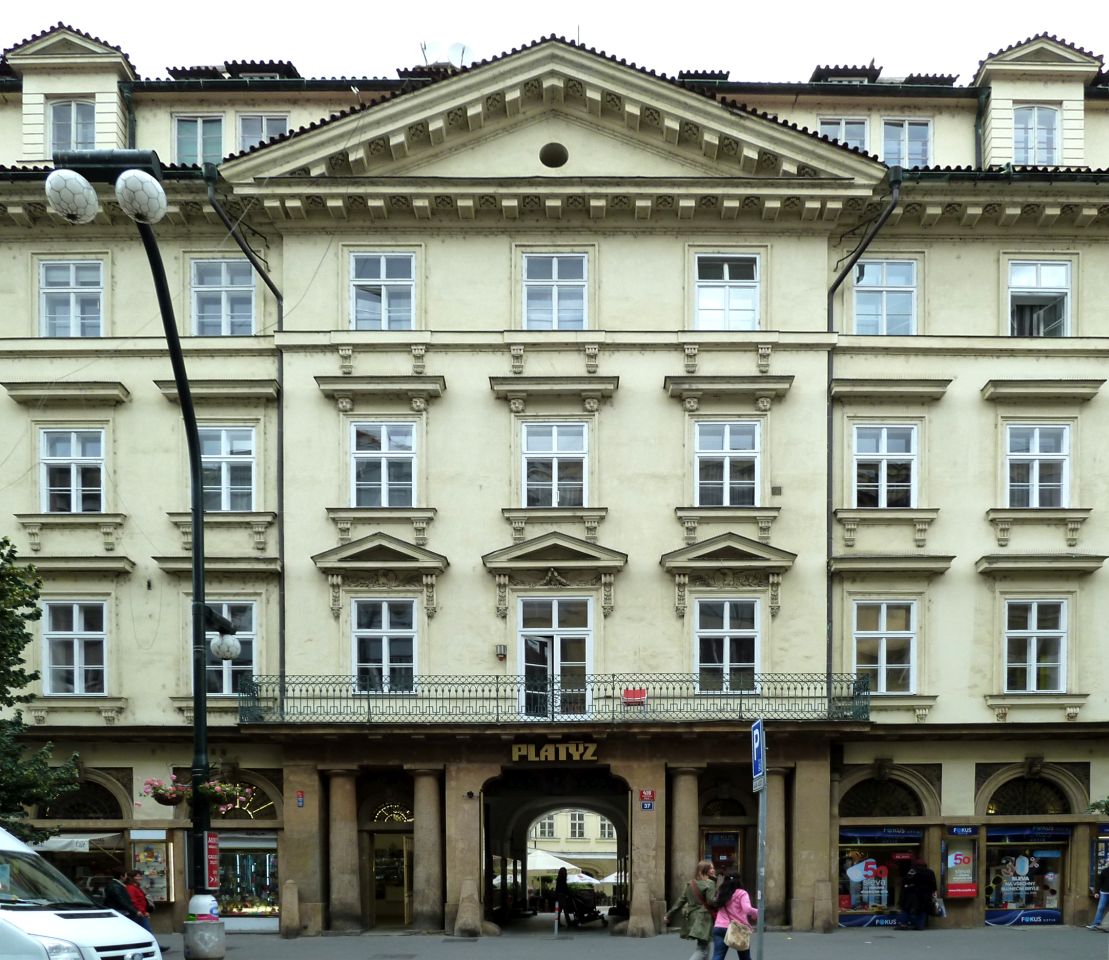 Gegenüber dem Palast Chicago staht der Palast Platýz. Durch die Passage und den Innehof kann man zum Kohlemarkt in der Altstadt gelangen.
