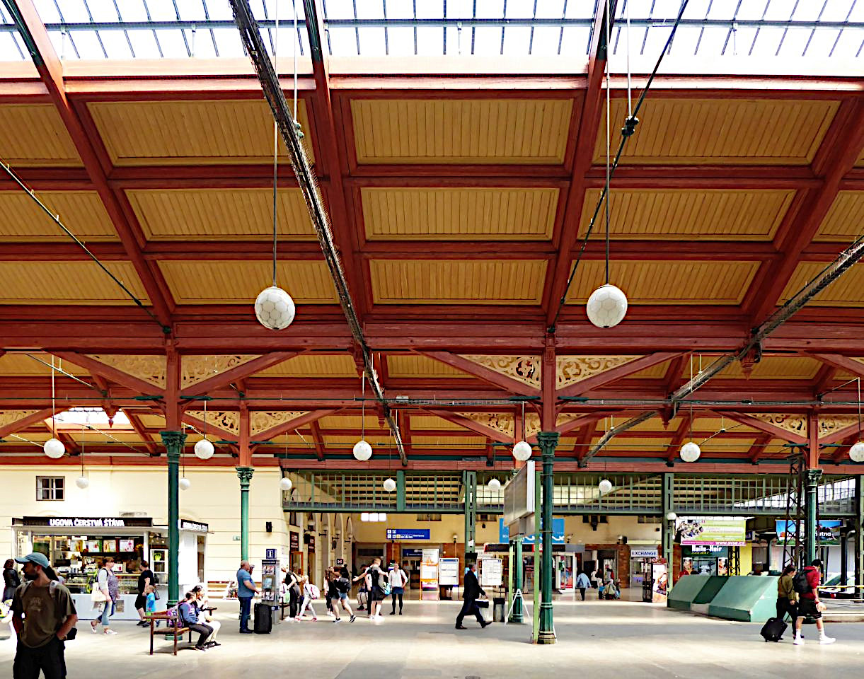 Vom Platz der Republik führt uns unser Spaziergang durch die Straße Hybernská. Hier an etlichen Palästen vorbei kommen wir zum Masaryk-Bahnhof.