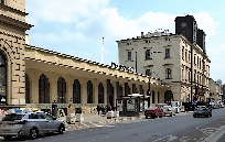 Der Bahnhof stand direkt an der Mauer der Neustadt-Befestigung, in die 6 Durchbrüche und Tore für die Gleise geschlagen wurden. Die Tore wurden nachts geschlossen. Im Jahre 1862 erfolgte Bau der schönen verglasten Abfertigungshalle mit Gußeisensäulen und 1874 der Abbruch der Befestigungsmauer der Neustadt in diesem Bereich. Im Laufe der Zeit fanden verschiedene Umbauten statt und die letzte Renovierung erfolgte 2011.