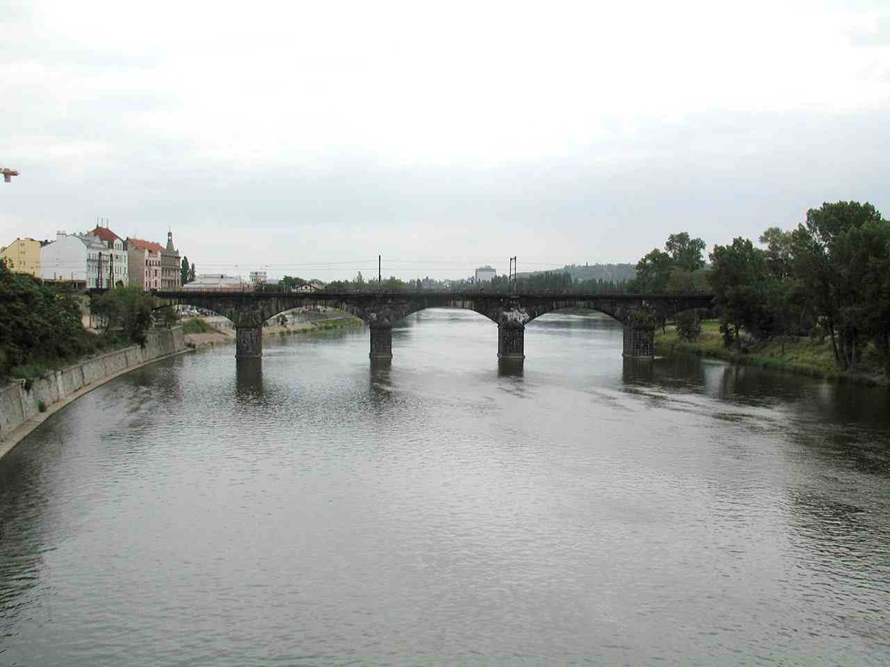 Sie ist nach der Karlsbrücke die zweitälteste noch stehende Brücke und die erste Eisenbahnbrücke über die Moldau überhaupt.