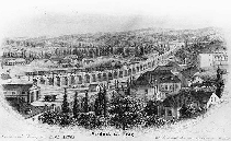 Erbaut wurde die Steinbrücke 1846-49 vom österreichischen Bauunternehmer Alois Negrelli, der auch den Suez-Kanal projektierte und u.a. an der Regulation der Flüsse Rhein, Moldau, Elbe beteiligt war. Das brachte ihm auch den Adelstitel Alois Negrelli Ritter von Moldelbe. Die Inbetriebnahme erfolgte am 6.4.1851.
