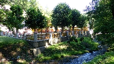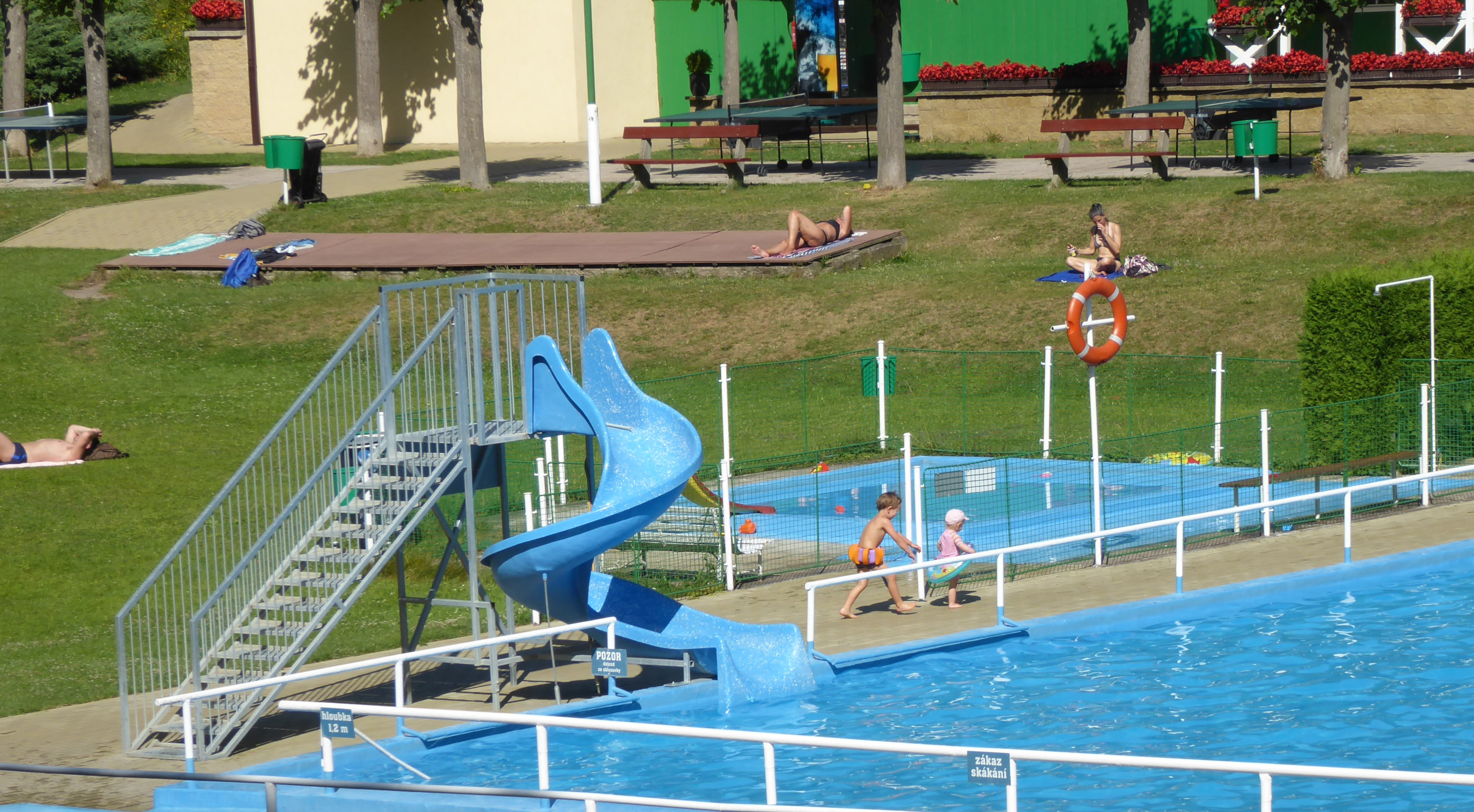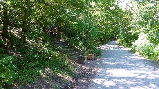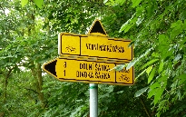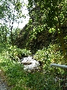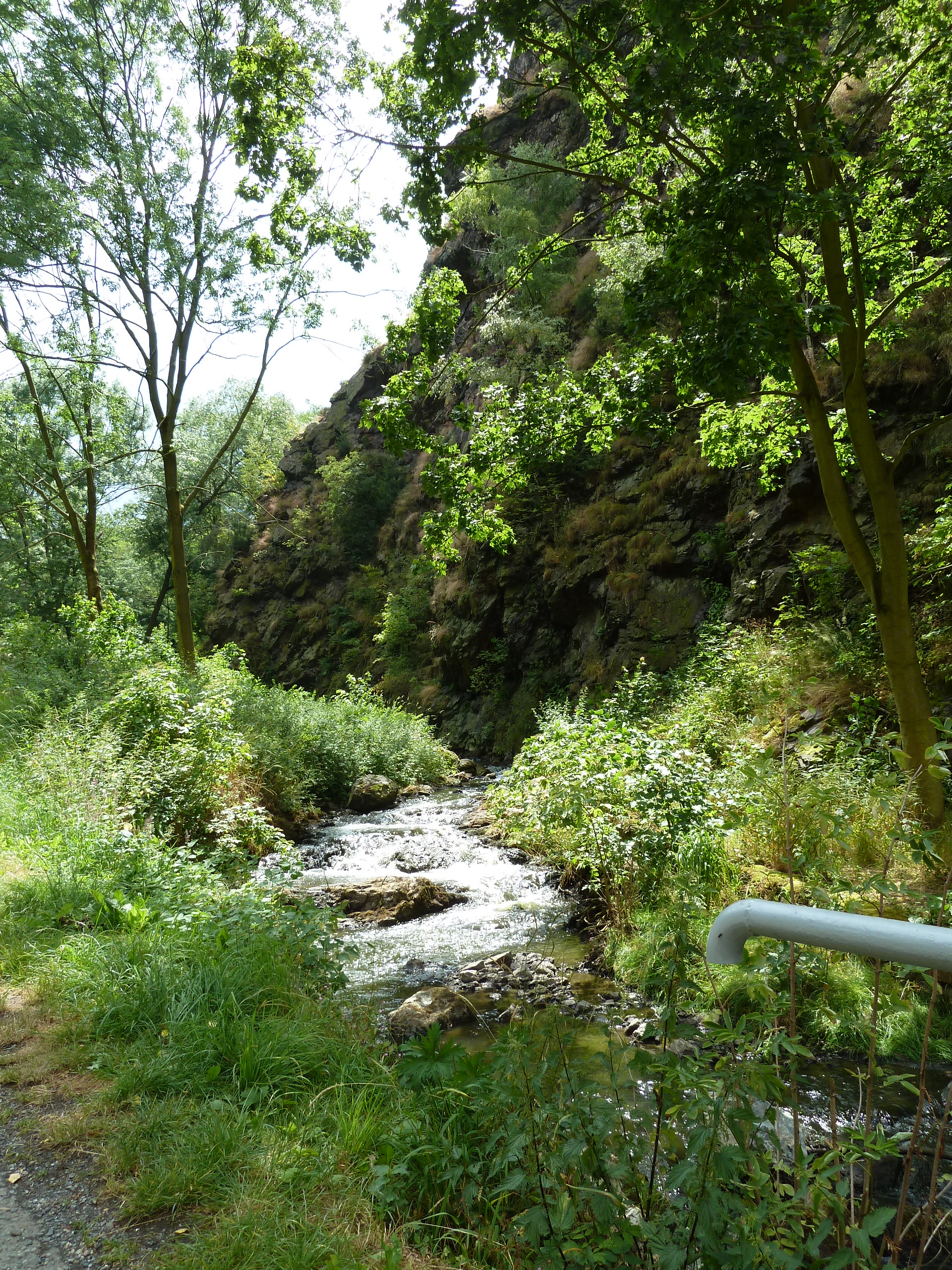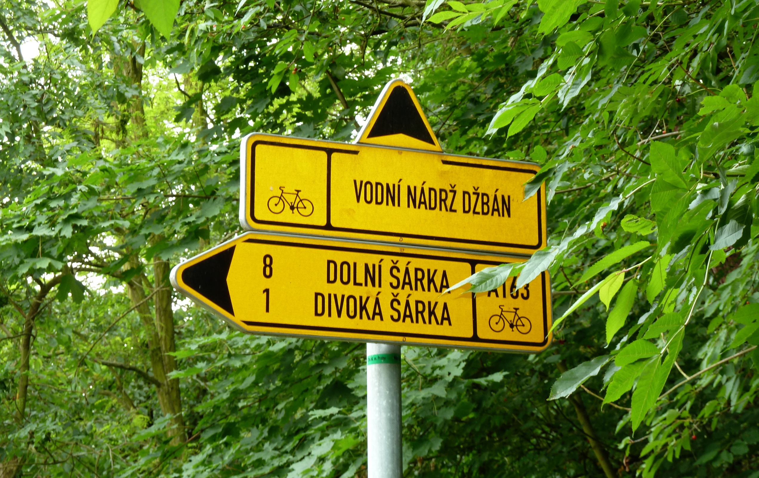 Wir überqueren den Weg auf der Rückseite von McDonald und steigen ein paar verwitterten Steinstufen herunter und gehen gemütlich am Bach entlang in der Schlucht zwischen den Felsen bis zum Freibad Divoká Šárka. Hier können wir einen Badeaufenthalt einlegen, wenn das bekannt kalte Wasser nicht stört, oder einfach nur sonnen. In der Nähe befindet sich auch ein Gartenrestaurant Dívčí Skok (Mädchensprung) unterhalb des Felsens, von dem sich Šárka in die Tiefe hat stürzen sollen.