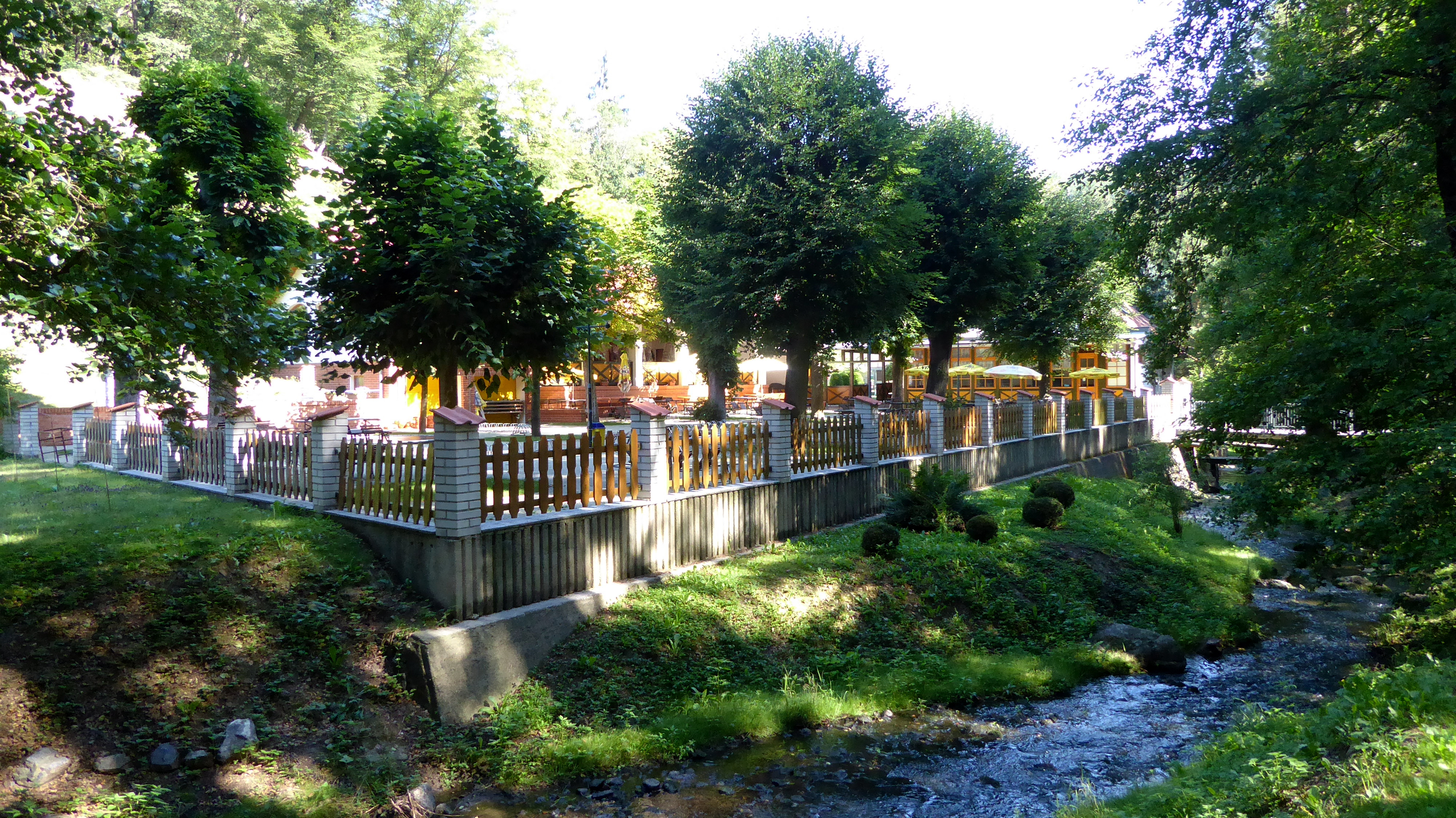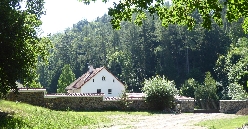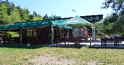 Weiter geht es an der früheren Teufels-Mühle (Čertův mlýn) vorbei eine Steigung hoch bis zum Campingplatz Džbán - Krug. Auch hier ist eine Rast im Campingplatz-Restaurant möglich.