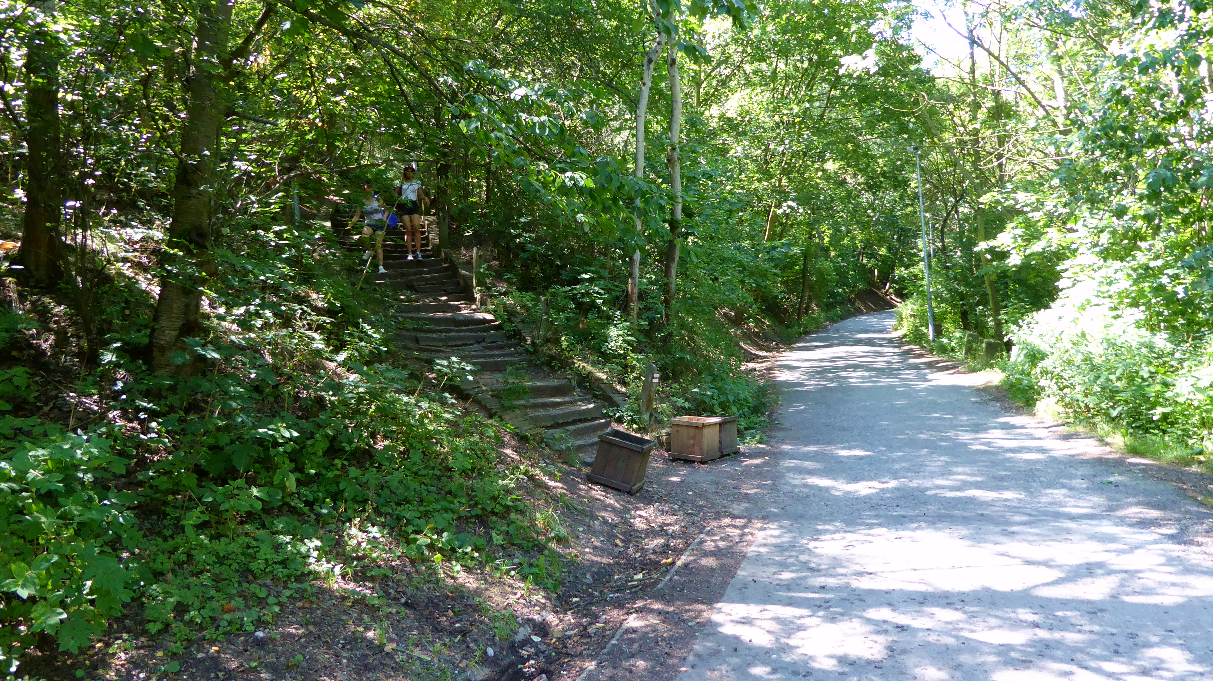 Zum Schluß überqueren wir eine große Grasfläche und steigen zum Wasserspeicher Džbán (Krug) herunter, um dann über die uns bereits bekannte Steintreppe zum McDonald-Parkplatz hoch zu steigen und auf dem gleichen Weg zum Wenzelsplatz zurück zu kehren.